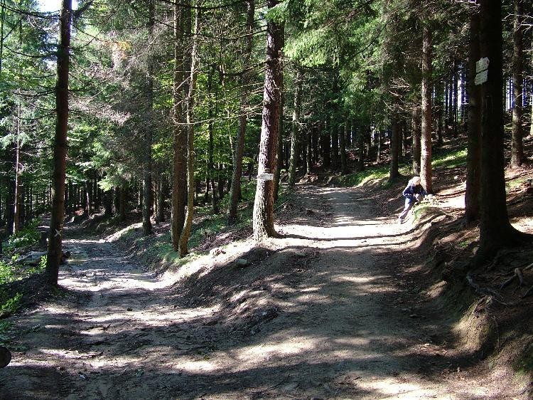 Rozcestí červené a žluté turistické značky pod vrcholem Polany, která se nachází jihovýchodně od obce Horní Bečvy. V blízkosti místo dalekého rozhledu.