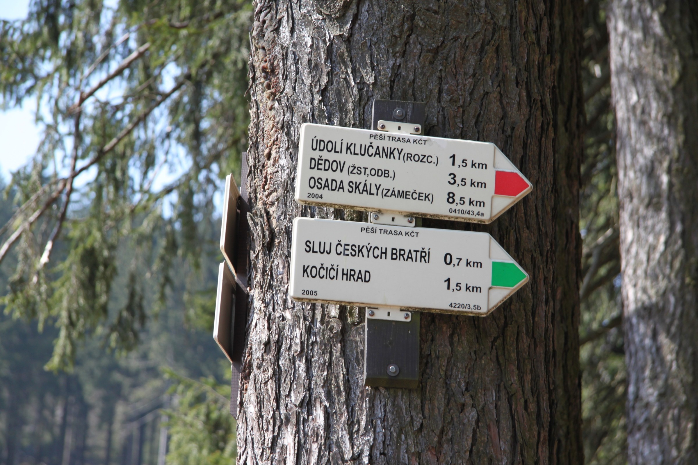 Rozcestí odbočka ke Kočičímu hradu v blízkosti osady Ostaš.
