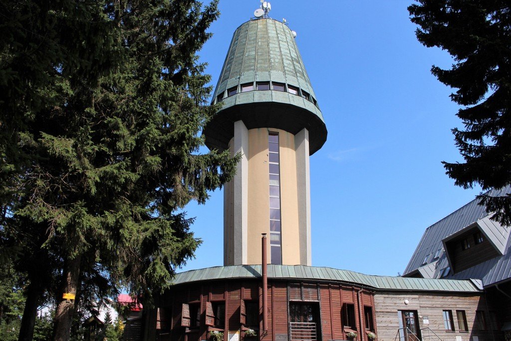 Suchý vrch ( 995 m.n.m.) se nachází v JV části Orlických hor. Na jeho temeni je několik objektů. V roce 1924 byla postavena Kramářova chata. Rozhledna se stavěla mezi roky 1931 – 1932 podle návrhu Antonína Parkmana a byla původně vodárnou. V šedesátých letech byla zastřešena a v osmdesátých letech se střecha opět měnila. Dostala kuželovitý tvar a tak ji vidíme i dnes. Na rozhlednu se prochází schodištěm při stěně rozhledny na vyhlídkovou plošinu ve výšce 25 metrů. Poté se nám otevřou výhledy na pohoří Kralického Sněžníku, Jeseníky a do polského příhraničí. Na opačné straně je údolí Tiché Orlice a oblast směrem ke Svitavské pahorkatině. Na jihu je nejvyšší bod Suchého vrchu, který je přibližně 300 metrů od rozhledny a jsou na něm vysílače. Na druhé straně je vidět jen les na hřebeni. Vstup na rozhlednu je zpoplatněn a žeton lze koupit v bistru v Kramářově chatě. Bližší údaje o chatě jsou ve fotogalerii. Na Suchý vrch vedou turistické cesty ze všech světových stran. Veřejnou dopravou se dá dojet do Červenovodského sedla odkud to jsou necelé tři kilometry. Autem je možné dojet až k rozhledně, kde lze i parkovat. V chatě je velmi dobré bistro s rychlou obsluhou a kulajdě, která byla v nabídce, jsme neodolali. Byla výborná. Navíc překvapí i ceny, které jsou oproti jiným turistickým místům přijatelné.