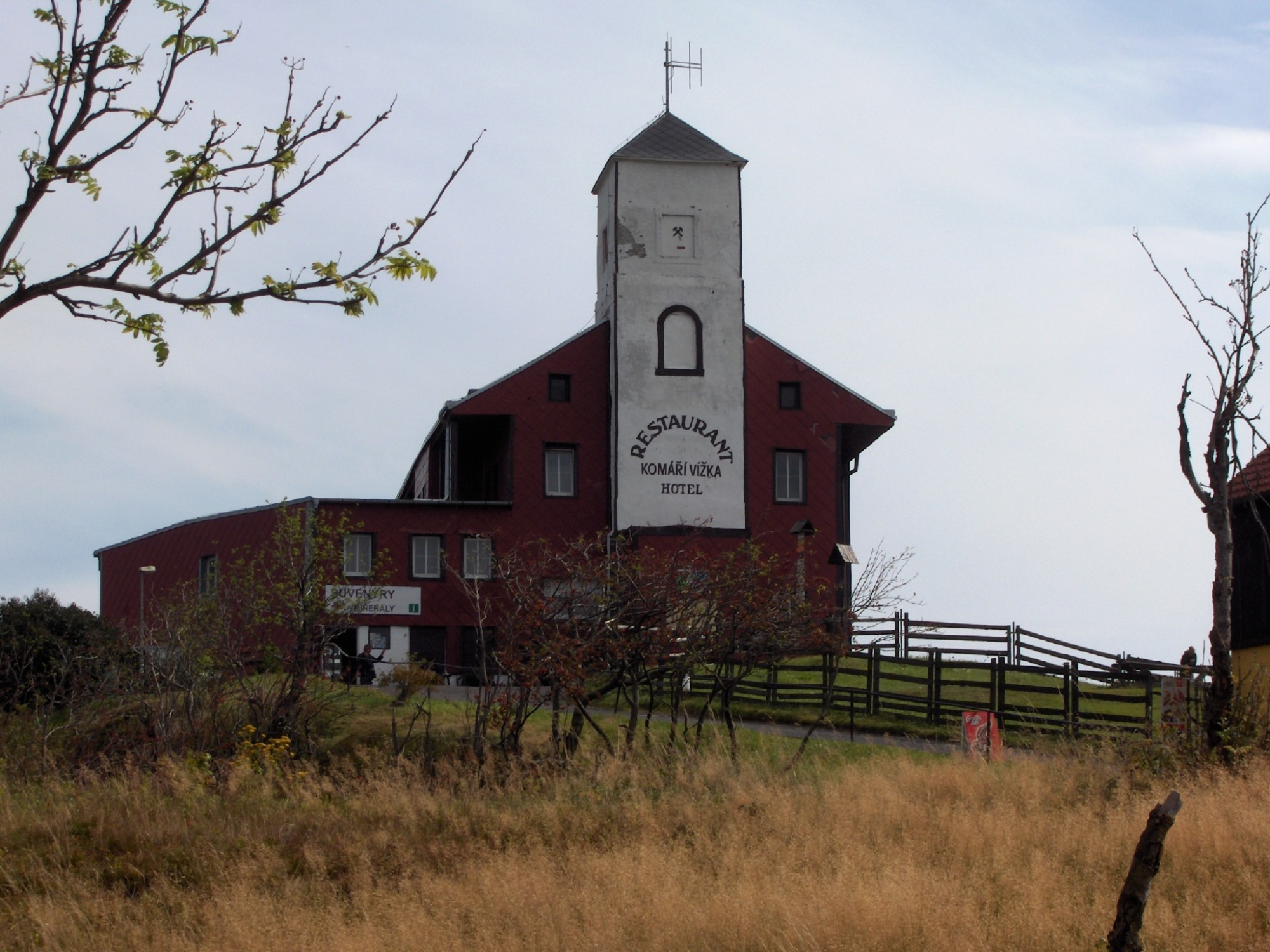 Na dominantě východní části Krušných hor, na Komáří Vížce stojí horský hotel s rozhlednou. Vede sem z Krupky nejdelší a nejstarší sedačková lanovka v ČR. V roce 1857 zde byl postaven hostinec s věží, která byla napodobeninou zvonice, která zde v minulosti stávala. Věž sloužila k úschově historického zvonu, který zde dříve ohlašoval začátek a konec šichty horníkům v okolních dolech a zároveň věž sloužila jako vyhlídkové místo. Věž byla v 90. letech minulého století zrekonstruována a to tak, že vyhlídková okna rozhledny byla zazděna. Tak zatím končí nejstarší rozhledna v Krušných horách.
