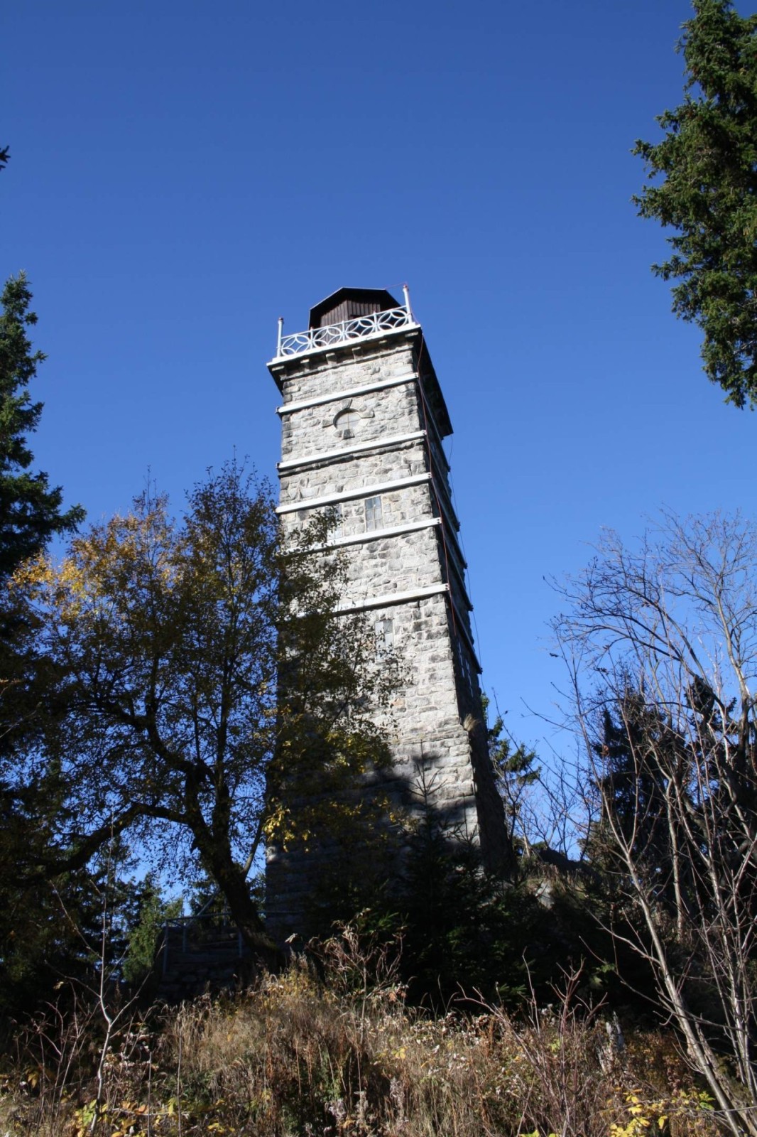 Realizaci měl na starosti stavitel Schöberle a stavět se začalo v červenci roku 1895. Rozhledna byla slavnostně otevřena 6. září 1897. Stavební náklady dosáhly částky 4.000 zlatých. Vyhlídková věž se záhy stala výletní atrakcí, a proto k ní byla v roce 1908 přistavěna výletní restaurace, jež byla otevřena 7. června 1908.