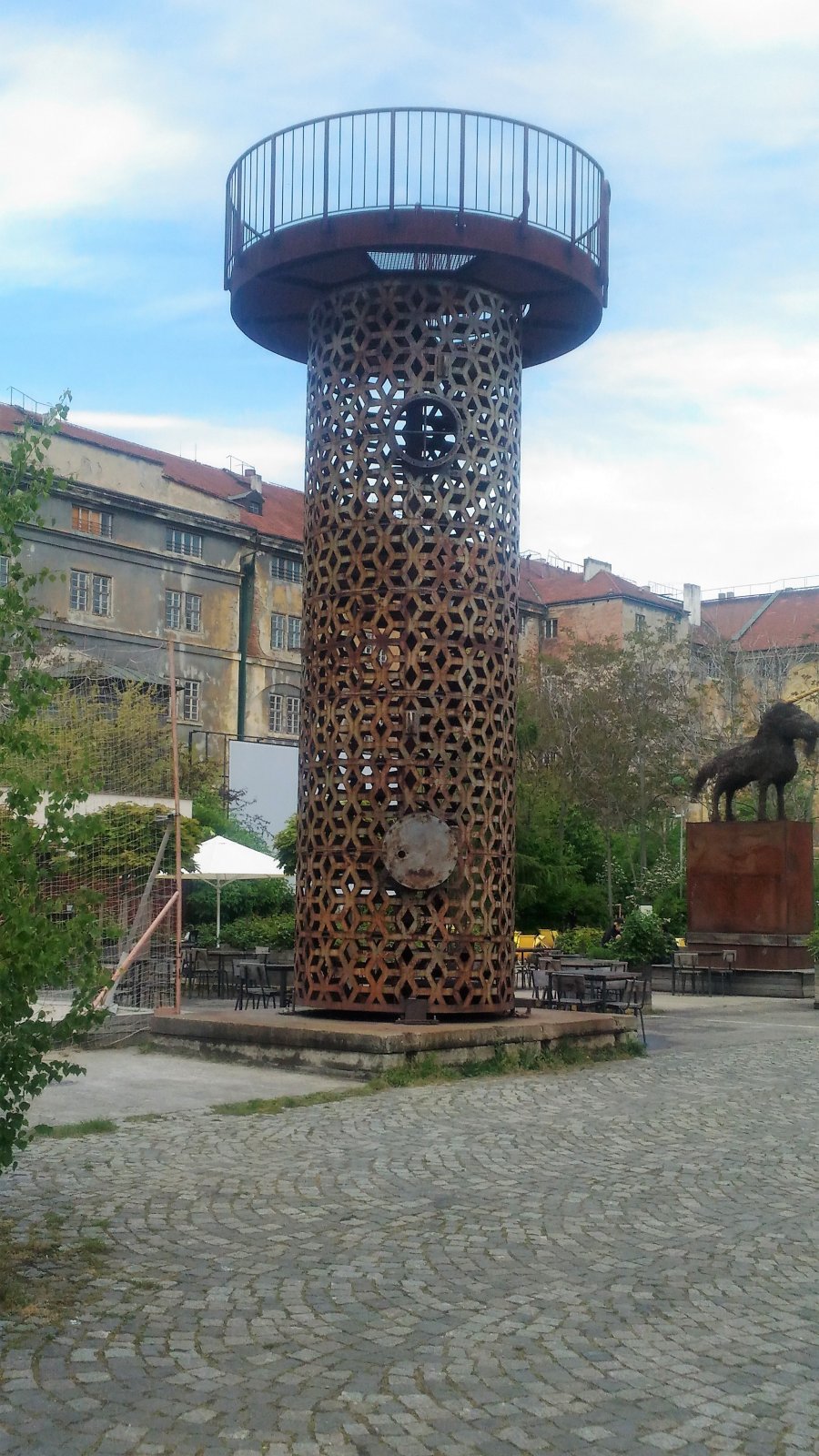 Ze starých k likvidaci určených cisteren a nádrží začal sochař Čestmír Souška vyrábět rozhledny. Podobná rozhledna je v plzeňském Depu, rozhledna Šiška v pražském parku Ladronka a rozhledna Štrykovaná v Řeporyjích.