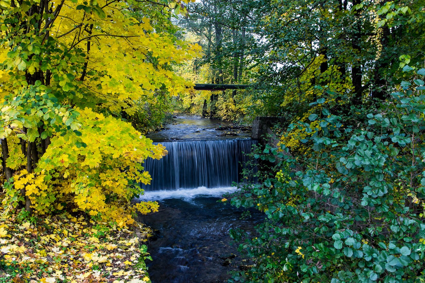 Člověk urazí lesem snad dvacet metrů a pak ho zahlédne. Už od cesty je jasné, že je tu k vidění ne tedy nejvyšší, ale jeden z nejkrásnějších vodopádů, jaký lze v Jeseníkách potkat. Kdyby tu byl jen ten, už tak by to stálo za to. Výška stupně je snad 7–8 m, vrcholek je tvořen opět takovou skluzavkovou částí, asi 2 m, ale členěnou na stupínky, pak voda naráží na jakoby římsu, padá zase o nějaké dva metry a zbytek zase klouže po skále do tůně pod vodopádem. Peřejka pod vlastně není nijak podstatná. A to ještě není konec, další 20 metrů stále obtížným výstupem ještě další stupeň možná 4 metry (1 metr malý + 3 m vyšší) v podstatě zase skluzavky, ale do vodopádů to nemá daleko. A ještě podle všeho by se daly najít už nějaké metrové stupně. Tady už ale potok pomalu ztrácí svůj jednolitý tok, nakonec i stezka se ztrácí v jedné z větví potoka, když ale objevím schody, je jasné, že stezka jde správným směrem. Pokračovat kolem potoka už je beztak téměř nemožné, ale závěr výstupu je alespoň zpestřen i drobným skalním výchozem, pod kterým můžeme pozorovat ještě nějaké vodní skoky.