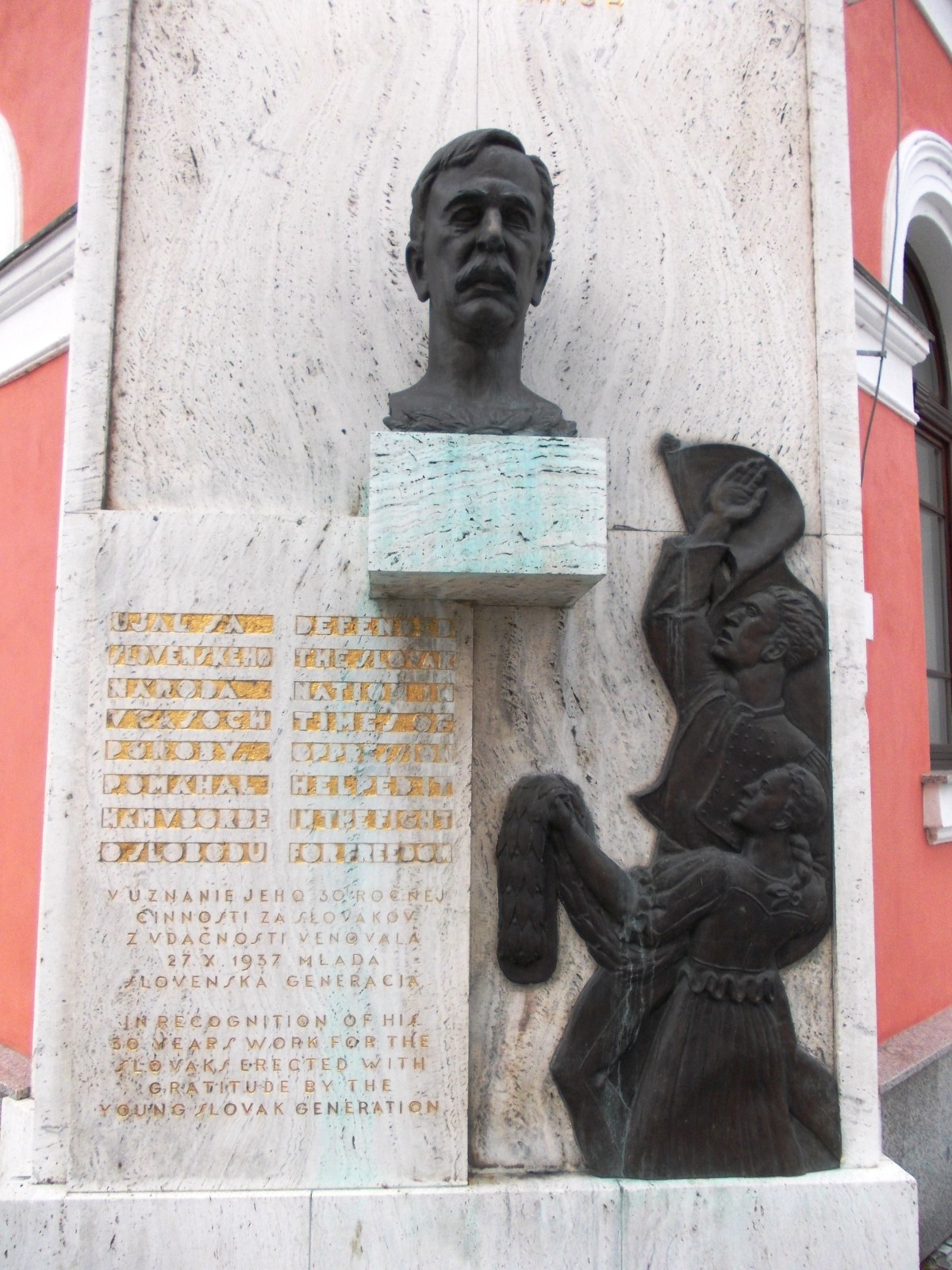 Ružomberok - radnica a mariansky stĺp na námestí A. Hlinku