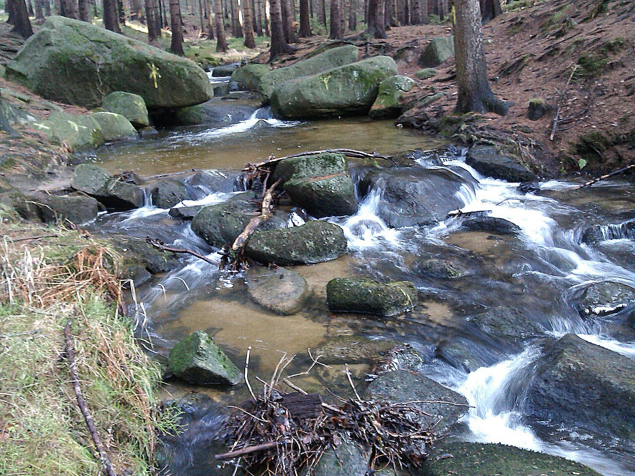 Krásné údolí s peřejnatým potůčkem(Vilémovský p.) najdeme mezi Velkým Šenovem a Salmovem(část Mikulášovic).Na mapách je označeno někdy jako Suché údolí.nad potůčkem vede značená zelená trasa Velkým Šenov-Hrazený.Nejkrásnější úsek si projdeme od Salmovského rybníku po proudu potůčku až k černému rybníku.Narázíme na uzká kamenná koryta-kaskády-skalky a kameny.Nejkrásnější je tzv.Čertův kámen (Černé kameny)..kde se potůček kolem proplazí a vytváří za vyššího stavu vody hezké kaskády.