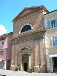 Kostel je postaven v neoklasicistním stylu s dekorativních cihel, hlavní vchod má štíty s Kamennými vlysy, které shlíží na náměstí Piazza Matteotti a je to místo, kde se zastavovali i projíždějící vojáci. Dominantou náměstí "Piazza Matteotti" je umělecká fontána postavena v roce 1870 dle projektu architekta Romana Vespignani a nedávno byl ještě více působivější sochy "Dreamers" (=snílka) práce sochaře Sambenedettese Paula Annibali.