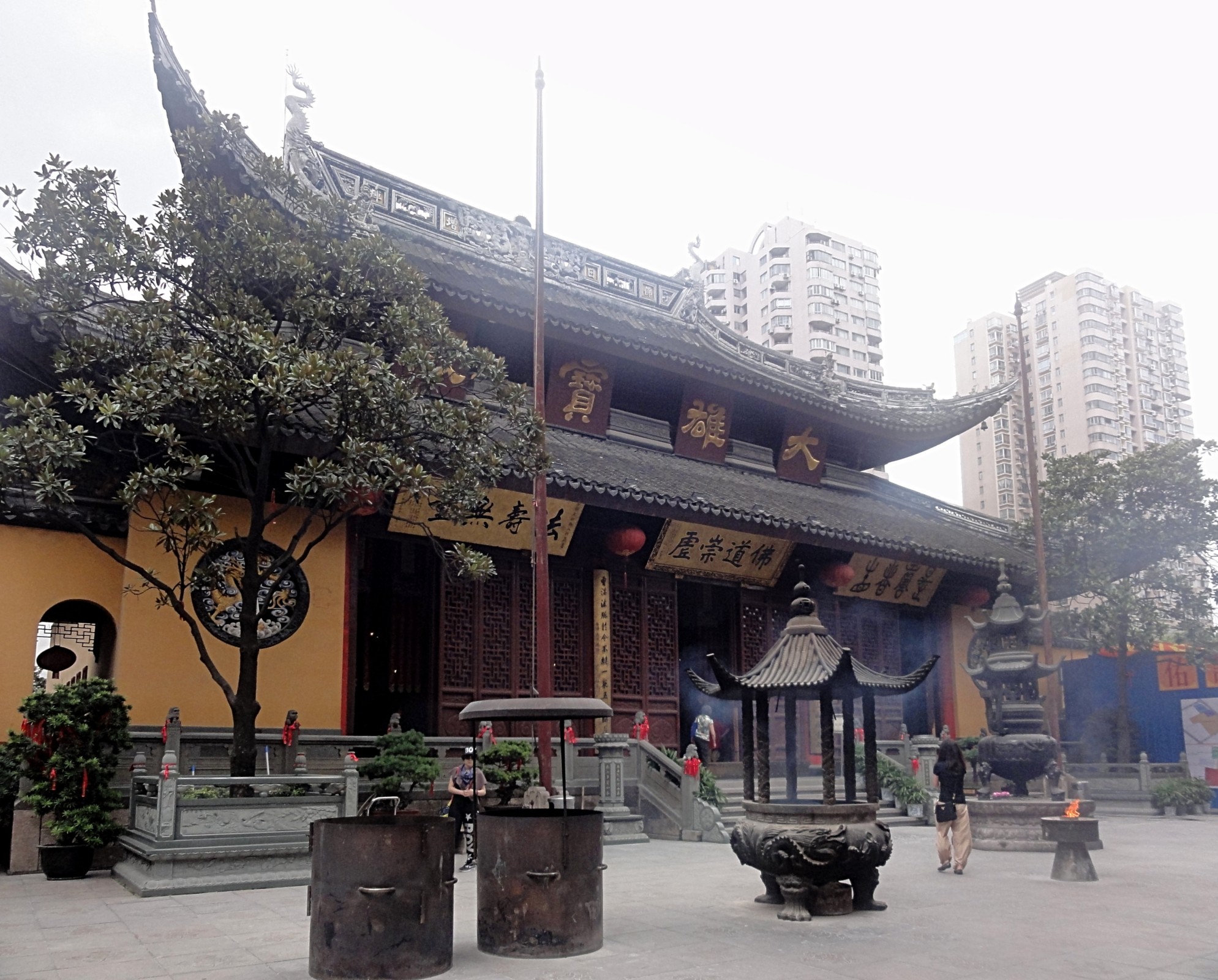 V chrámovém komplexu jsou další budovy a sály, jako např. komora čtyř nebeských králů, vchází se do ní třemi šarlatovými branami, které znamenají osvobození se od světských záležitostí. Je na prvním nádvoří ověnčená červenými lampiony. Ve velkém sále je hodně soch, ale hlavní jsou tři zlaté sochy Buddhy, prostřední představuje Šákjamuniho, nalevo je Amitábha, napravo Bhaišandžjagurubuddha. Dále se v komplexu nachází 18 unikátních soch Arhatů, v chrámu žije 17 mnichů. Chrám je otevřen od 8.30 do 17 hod., vstupné činí 20 CNY a vstupné do místnosti se sedícím Buddhou činí 10 CNY.
