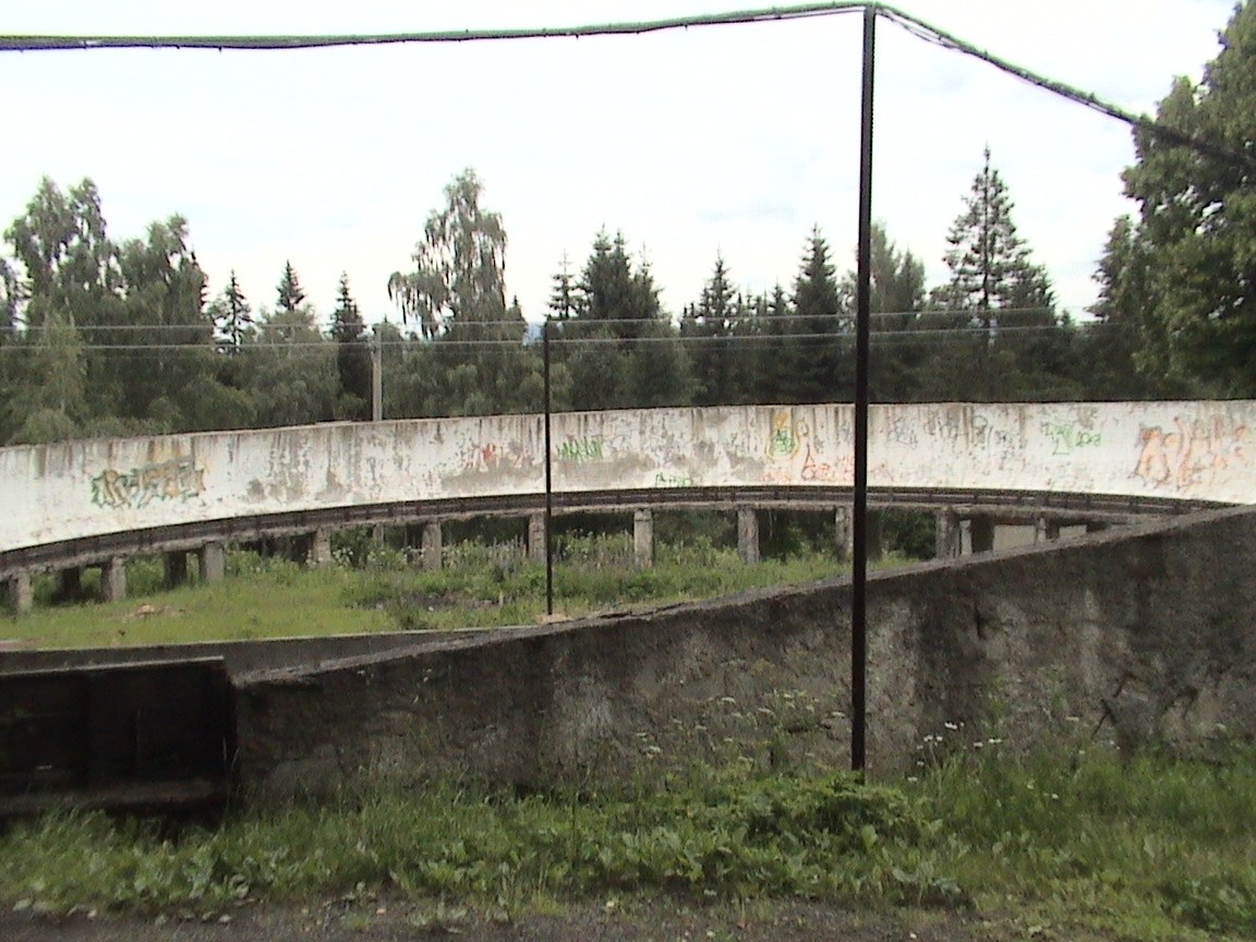 Milí turisté,jestliže zavítáte do okolí Smržovky, Tanvaldu či Černé studnice, tak neopomeňte se podívat na sáňkařskou dráhu, kde také trénoval známý kreslíř Rudy Pivrnce a také sportovec - sáňkař - Petr Urban, který ve Smržovce stále bydlí. Když jsme tam byli my, tak to tam vypadalo dost zpustle. Ale po dráze jsme se prošli, nikde ani živáčka. Dráha zde byla poprvé vybudována v r.1912, tato na fotkách pochází z let 70tých min.století. Nikde ani živáčka, klid....Můžete se podívat, jak je vše postaveno. Je zde prý i 400 st. zatáčka. A když se vynadíváte, občerstvíte se ze svých zásob, můžete jít potom za dalekými rozhledy na rozhlednu Černá studnice, kde je i menší arboretum.