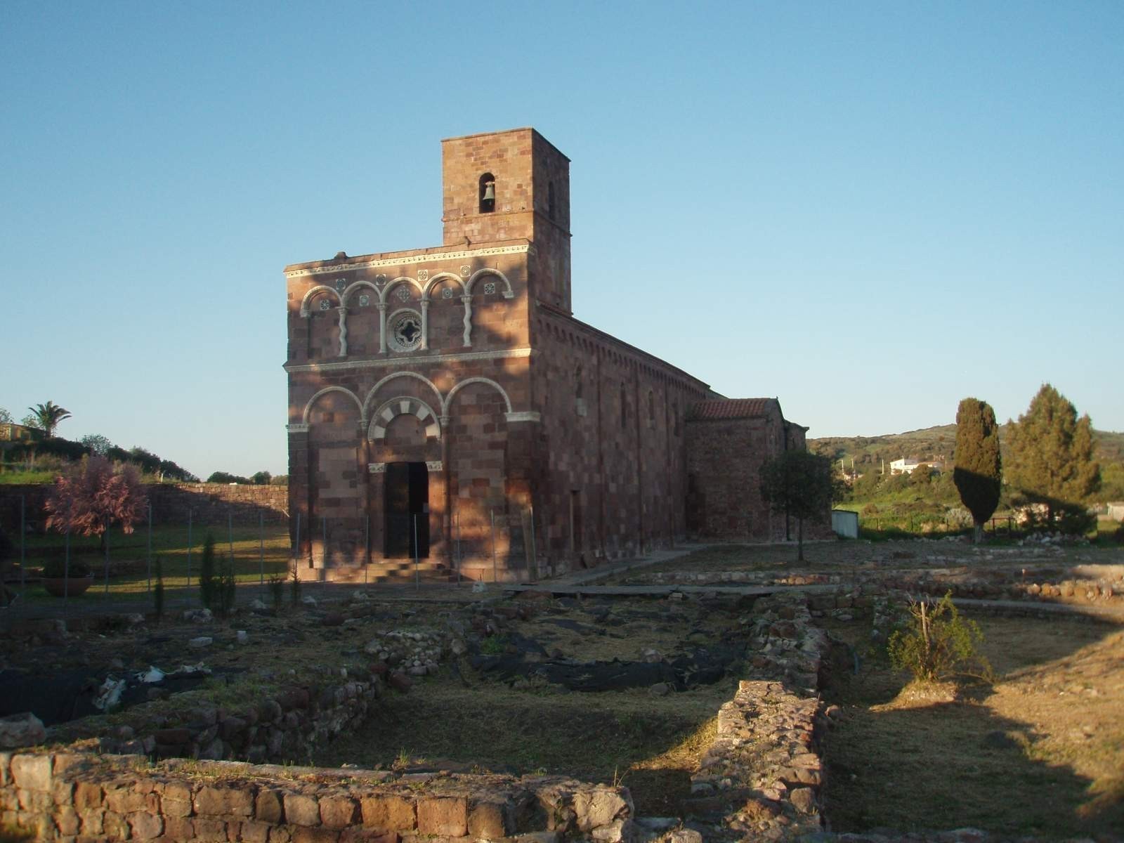 Realizace stavby je spojována s osobou Maurianuse I z Torres, který vládl patrně v letech 1065 to 1082. Kostel byl vybudován staviteli z Pisy a Lombardie. Vysvěcení se datuje do roku 1117 a v roce 1122 je kostel uváděn ve vlastnictví světově proslulého benediktinského opatství Montecassino. V roce 1444 se stal součástí arcidiecéze z Torres. Kostel byl stavěn s využitím červeného trachytu a jasnějšího vápence, použitého pro účely dekorace. Fasáda, které chybí vrchní díl (rozpadl se během staletí), je dělena na dvě úrovně. Dolní část má dva nárožní čtverhranné pilíře a dva polosloupy podpírající dva oblouky s jemně zdobenou obloukovou římsou z vápence. Centrální portál je také z vápence, zdobený motivem akantového listu. Rostlinné motivy jsou též prezentovány v bíle orámované horní úrovni fasády. Jsou ve slepých lodžiích s pěti arkádami, ve kterých jsou obsaženy neobvyklé geometrické dekorace. Specifický výraz dávají také fasádě dva boční sloupy, jež mají klikatící se tvar. Dominantou centrální arkády je malé rosetové okno.