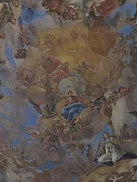 Elipsovitá zámecká kaple sv. Jana Nepomuckého byla postavena v letech 1722 až 1730, ale až o osm let později byla dokončena její bohatá fresková výzdoba, které dominuje malba nástropní. Hlavním tématem těchto fresek od Johanna Franze Hoffmanna z Klodska je – celkem pochopitelně – sv. Jan Nepomucký, který je zde zpodobněn např. nesený anděly (výjevu z jeho života je zde ale přibližně deset). Kromě tohoto světce zde můžeme vidět také např. sv. Apolénu, Barboru (rodová patronka Götzenů), Antonína Paduánského, Františka Xaverského, Františka z Assisi, Jana Sarkandera, Jana Křtiele nebo erb rodu Götzenů (vedle něj umístil malíř svůj podpis a dataci dokončení),