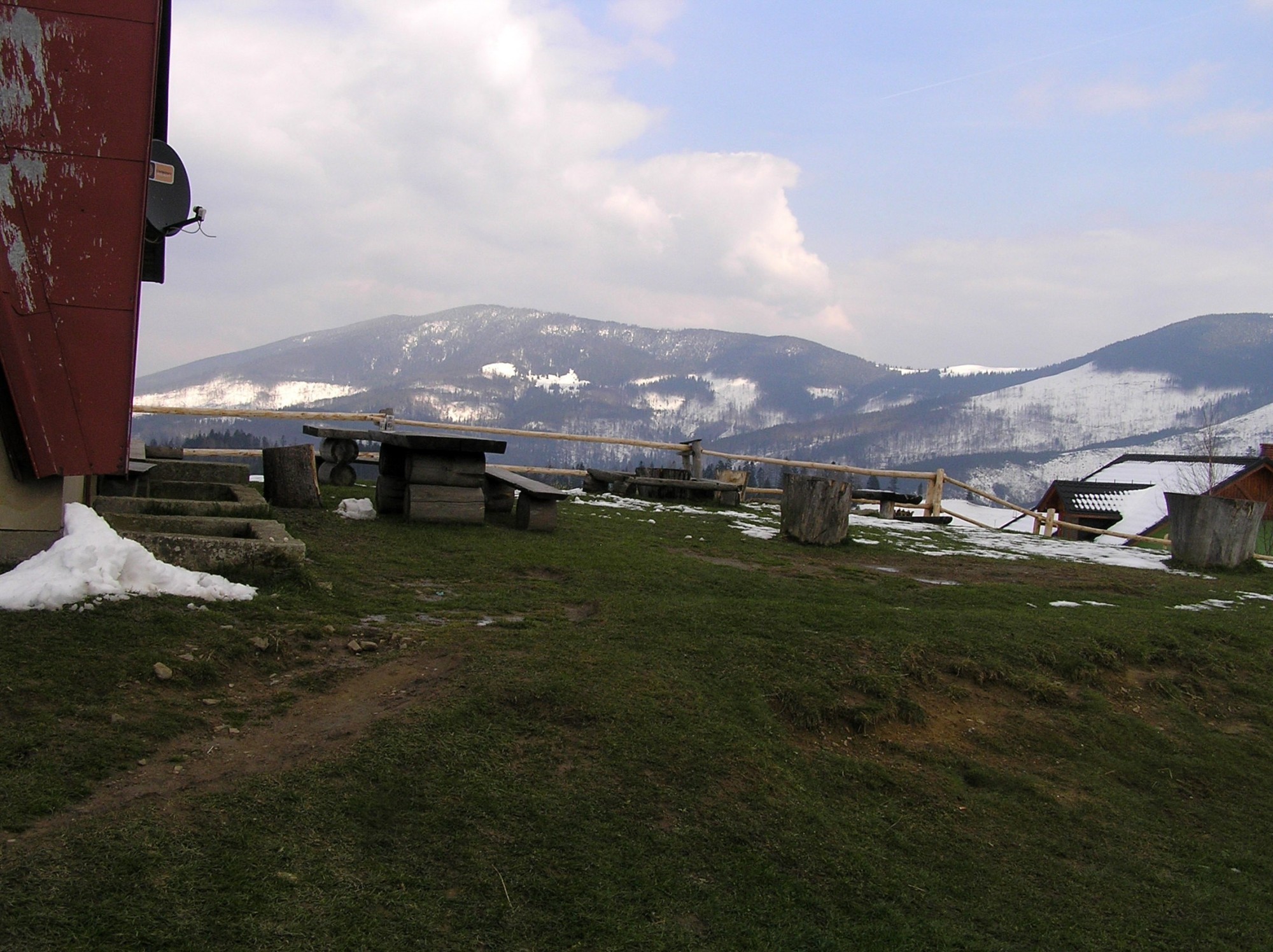 Schronisko PTTK na Hali Boraczej - pohled na Halu Buraczu od jihovýchodu + lokalizace chaty(duben 2011)