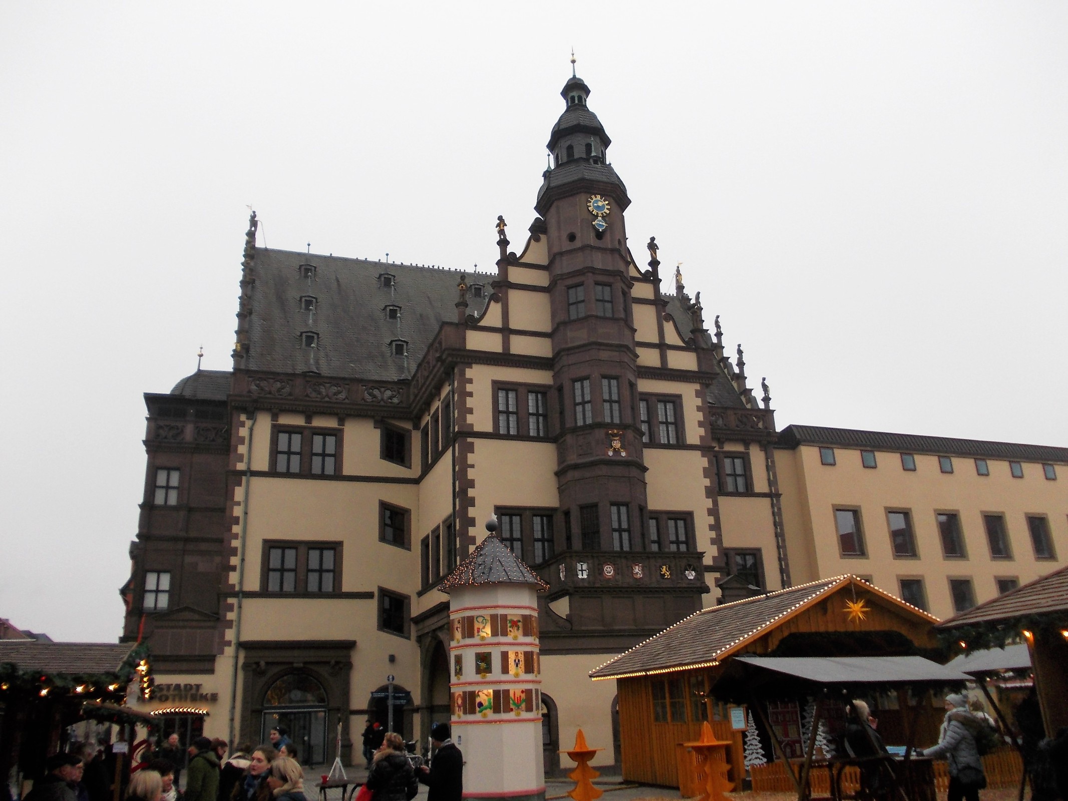 Protože podél Mohanu vedou tři cyklostezky, dá se město navštívit poměrně snadno i kolmo. Prohlídku začneme na náměstí Marktplatz, které leží cca 10 minut chůze od nádraží Schweinfurt Stadt. Nepřehlédnutelná je zde Radnice postavená v letech 1570 – 1572 v jihoněmeckém renesančním slohu. V budové Radnice najdete i infocentrum, mimo sezonu bohužel o víkendech zavřené, ale jak už to v německých městech bývá, letáčky jsou k dispozici v jakési předsíni infocentra, která je otevřená stále.