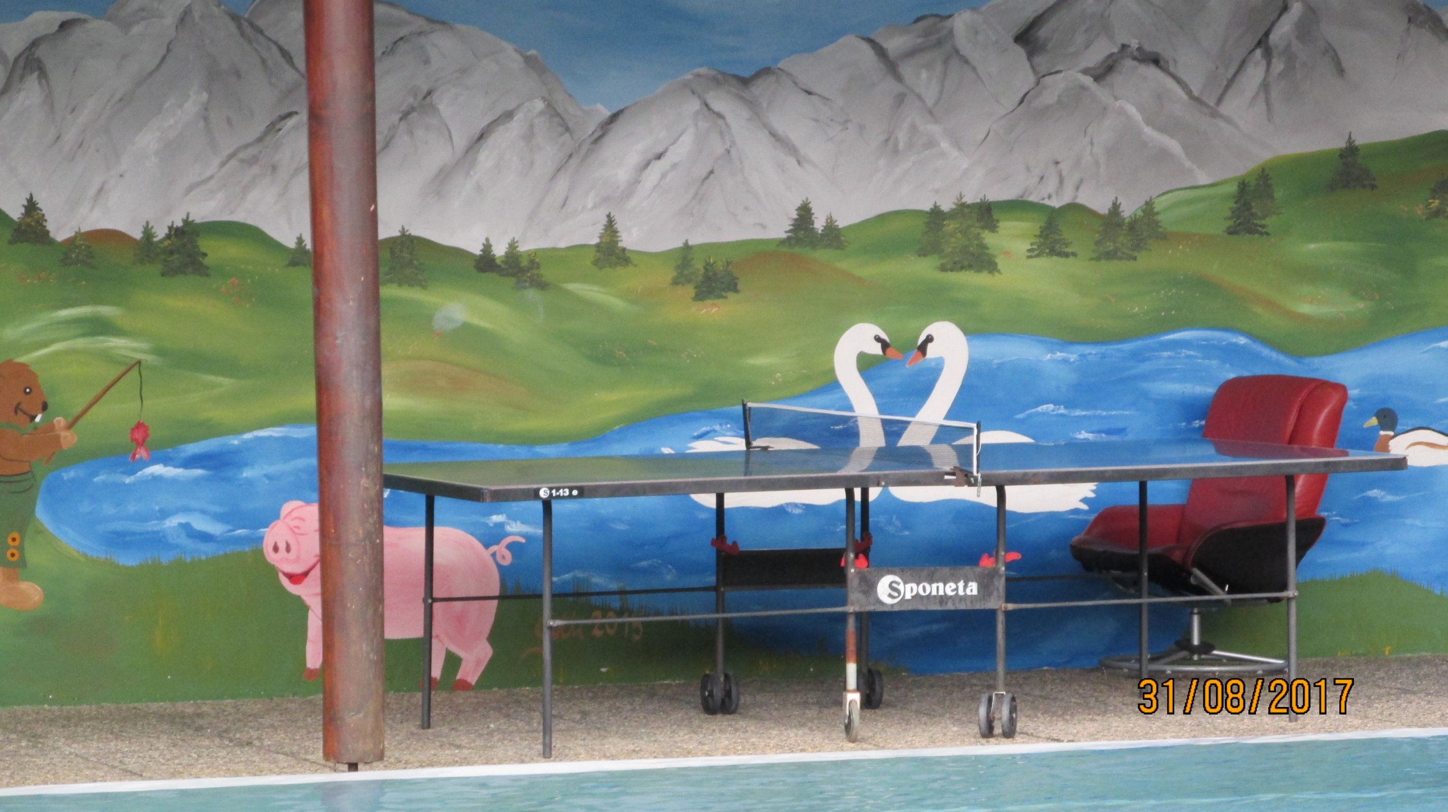 V městečku Mühlbach am Hochkönig, kde jsme ubytování v hotelu Gasthof Grünholz se kromě lanovky, kostela, hornického muzea nachází také koupaliště s vyhřívanou vodou a tobogánem. Návštěvu jsme zvolili cestou při návratu z Ahornstein. Vrcholila vlna veder, aspoň jsme na dovolené měli hezké počasí, takže osvěžení bylo na místě. Vzhledem k tomu, že se počasí již kazí, jsme posledními návštěvníky, a přesto nás ochotně pustili dovnitř. I když se jedná o místní koupaliště v horské obci, najdete zde vše, na co jste zvyklí a budete překvapeni příjemnou atmosférou.
