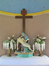V interiéru jsou za nejcennější artefakty považovány fragmenty pozdně gotického triptychu z přelomu 15. a 16. století a gotická polychromovaná plastika Panny Marie s dítětem a pietou z 15. století. Nachází se zde i několik rustikálních skulptur z 19. století, ostatní mobiliář pochází z období výstavby kostela.