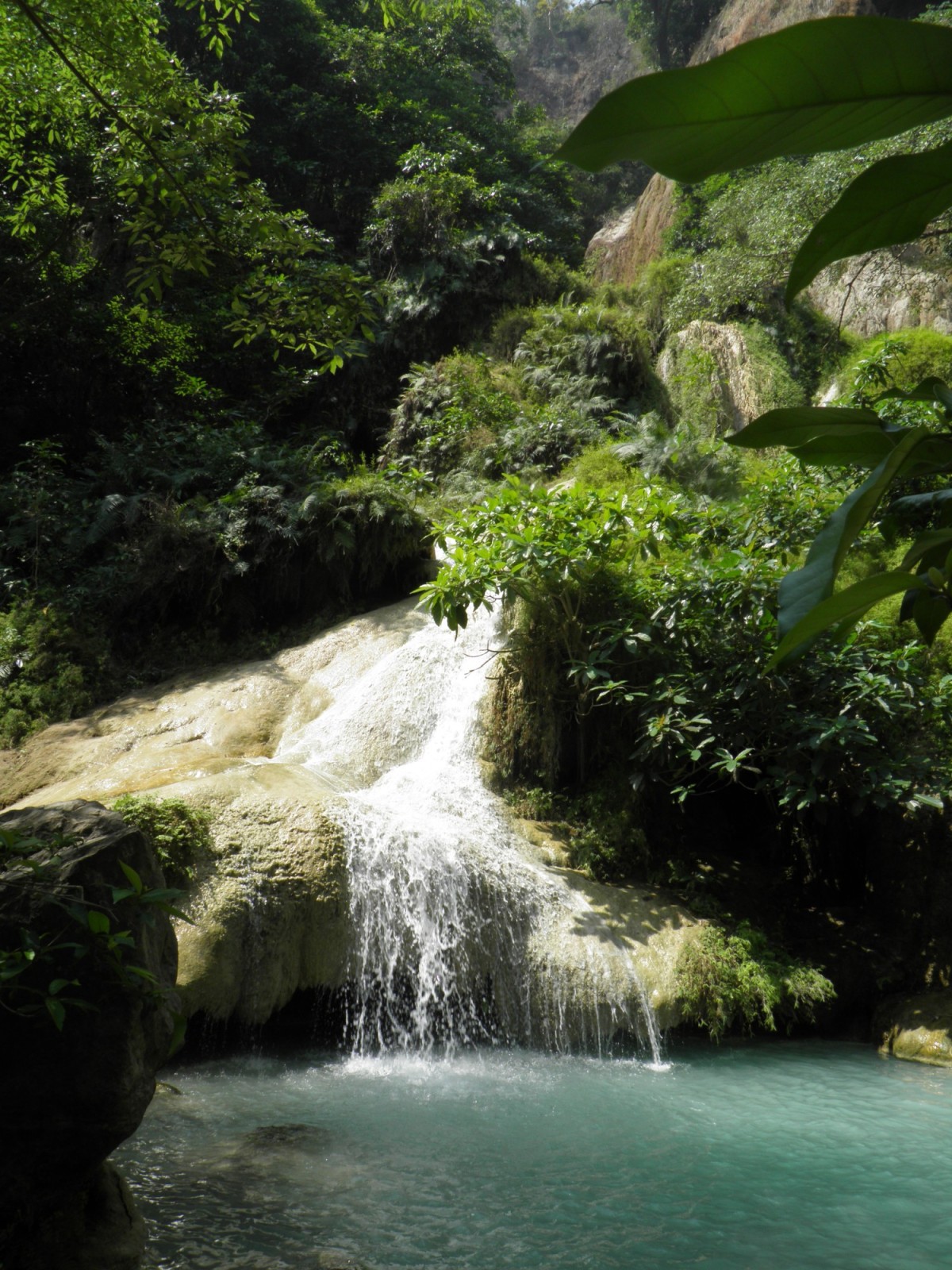 Sedmistupňový vodopád Erawan padá postupně do hloubky téměř 1500 metrů. Stezka pro pěší vede až k šestému stupni, dále je nutné šplhat po skále. Výstup však stojí za to - pohled na vodu tříštící se o kameny a padající do Jezírka pod vodopádem. Nejvyšší stupeň připomíná hlavu Erawana, tříhlavého slona z hinduistické mytologie.