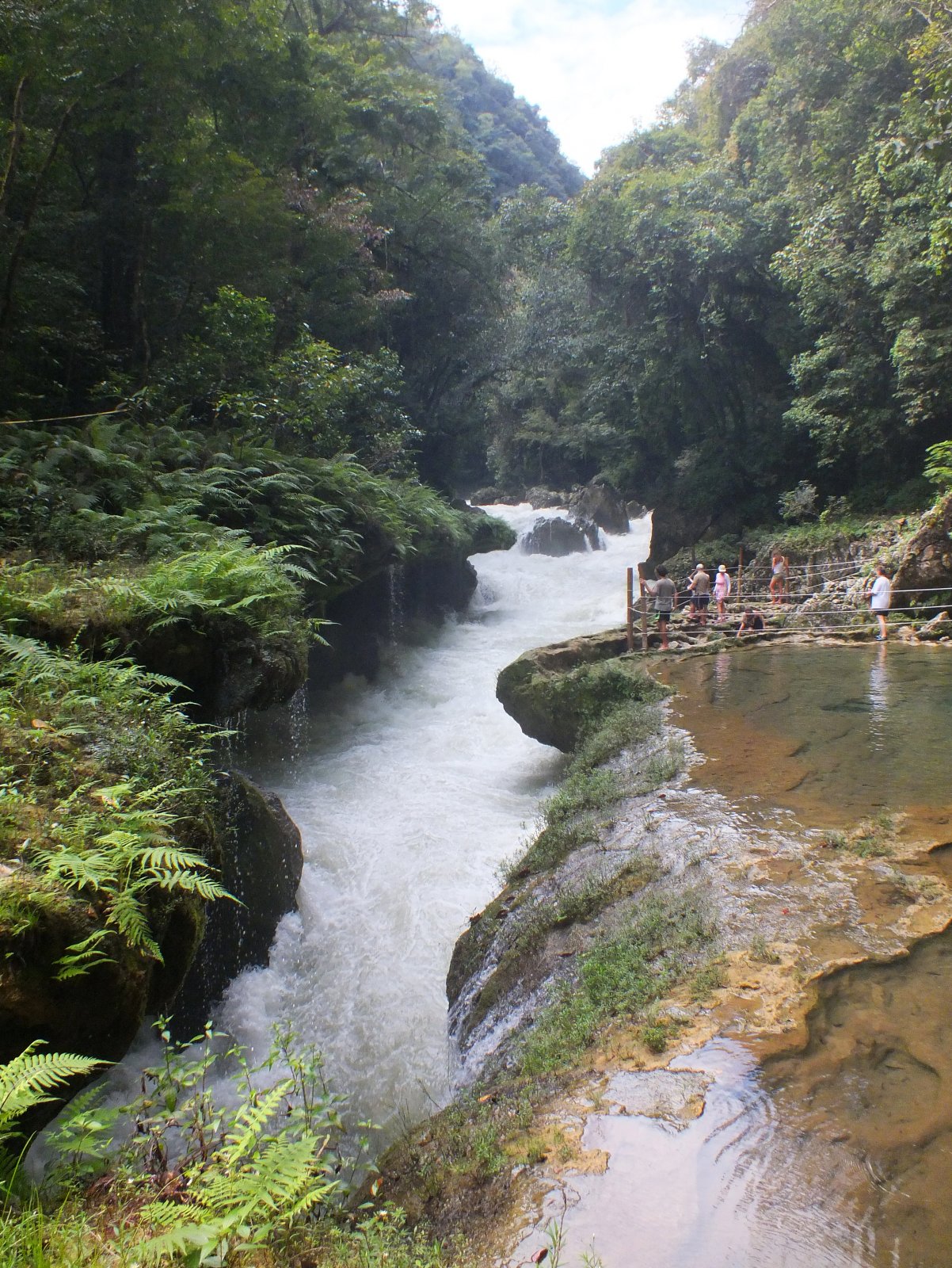 Druhým bodem na programu bylo “El Sumidero“ - místo, kde se řeka Cahabón řítí do nitra země. Zaměstnanci parku zde dohlížejí na to, aby se nikdo moc nepřibližoval. Vápenec tu může klouzat a spadnout tu do divoké řeky by znamenalo jistou smrt. V deštivých obdobích se řeka rozvodní do takové míry, že ji propast v zemi není schopná všechnu pojmout a část řeky teče i přes tůně. Ty jsou za normálních okolností zásobovány vodou stékající z okolních svahů.