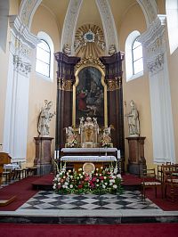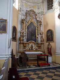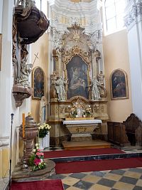 Hlavní oltářní obraz znázorňuje pokání Marie z Magdaly před Ježíšem a apoštoly. Autorem byl Josef Pilz z Olomouce. Po stranách oltáře jsou sochy církevních otců. Po stranách u kaplí je kazatelna severně, na protější straně pod baldachýnem výjev křtu. Boční kaple jsou zasvěcené opět ženským světicím.