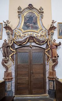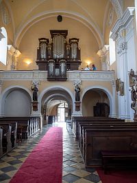 V hlavní lodi je nad vstupem kruchta podepřena třemi klenebnými oblouky.