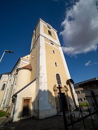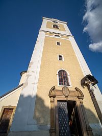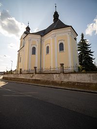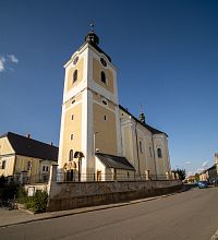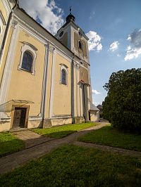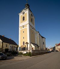 Mohutná věž dominuje poměrně širokému okolí, což v relativně placaté oblasti, které říkáme Haná je dobrým orientačním prvkem. Dávní stavebníci zvolili pro kostel i mírně zvýšený terén, oproti okolní krajině, takže i sama příroda jim pomohla zdůraznit svatostánek. Ten může mít zřejmě i starší založení (zmínka 1333), ačkoliv současný kostel byl v barokním stylu vystavěn v l. 1704–1705, ovšem stavebníci použili existující hranolovou věž, která pochází z 15. století, čil to je ještě pořád středověk. Důvodem novostavby byl požár v roce 1654. A nebyl to jediný, hořelo i v letech 1769 a 1771.