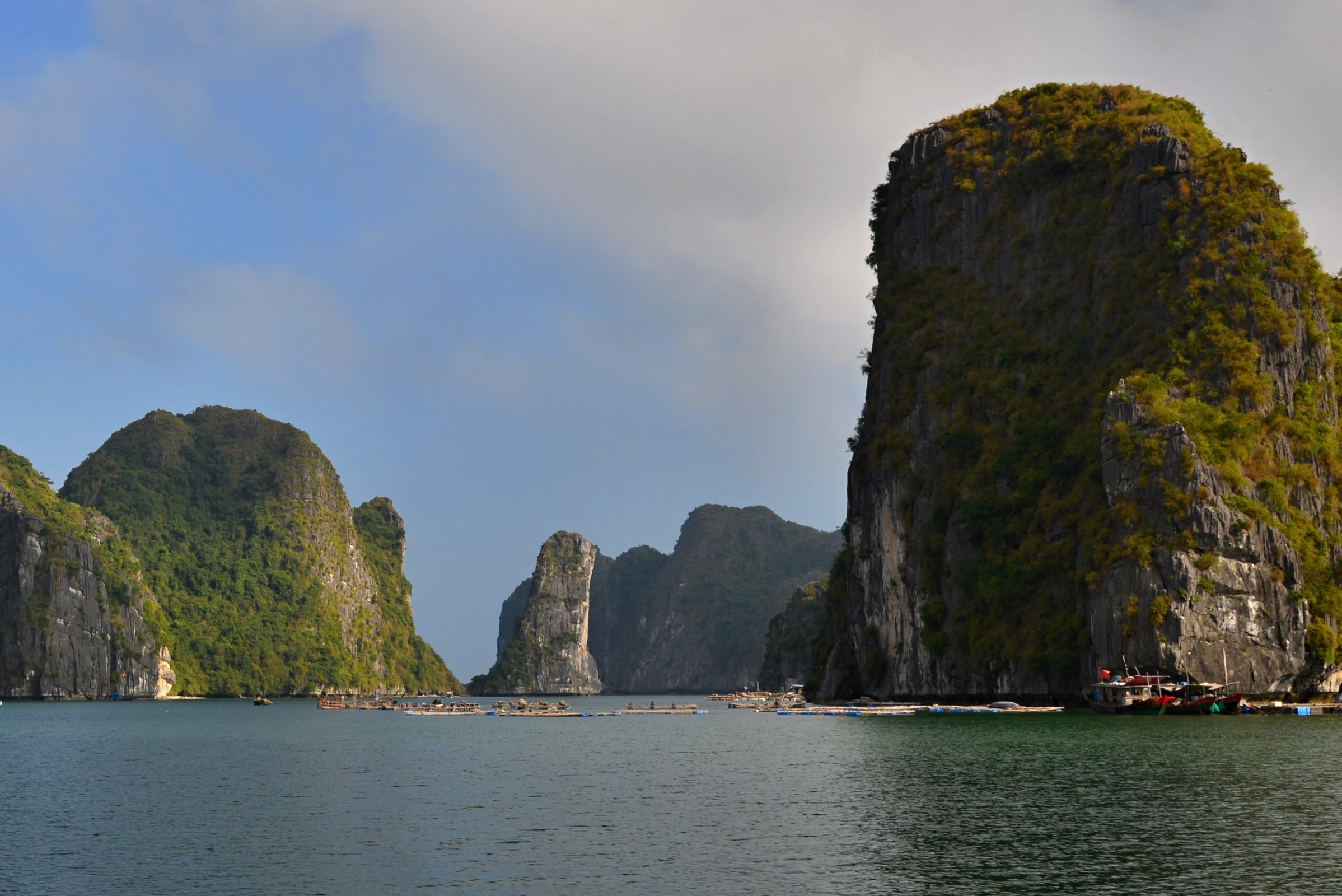 Loď jela mezi skalisky v oblasti Lan Ha Bay kolem ostrova Cát Bà a částečně do jižní oblasti Ha Long Bay. Velmi zajímavé bylo projíždět mezi plovoucími rybářskými vesnicemi, kterých je tady hodně. Suchozemec moc nechápe, jak mohou lidé žít na nějaké prostorově velmi omezené plovoucí dřevěné plošině, kde mají zbouchaný malý domek, suší prádlo, vaří, viděli jsme i řezat dřevo na cirkulárce. Kolem jsou kádě, koše na ryby a jiné mořské živočichy.