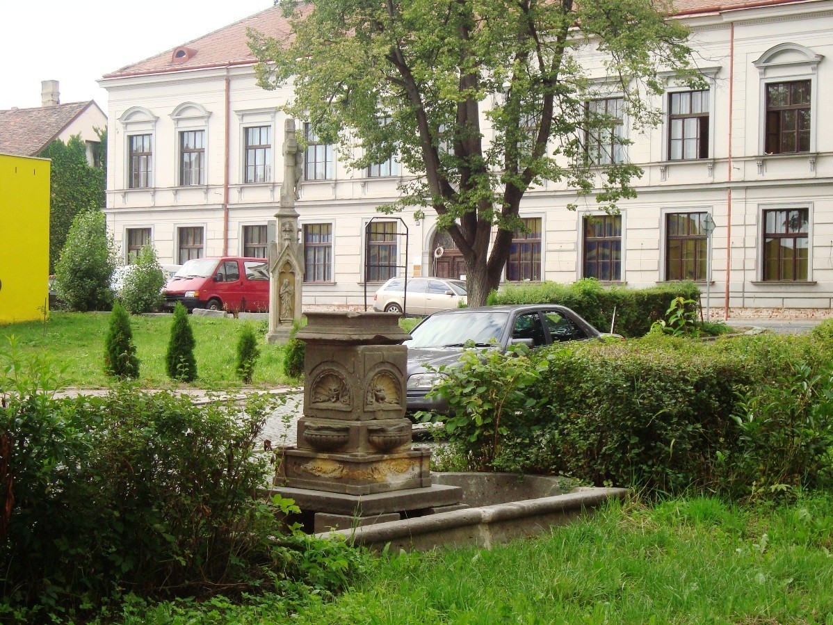 Před farním kostelem Nejsvětější Trojice v Sezemici se nachází čtyřboká barokní kašna z 18. stol.