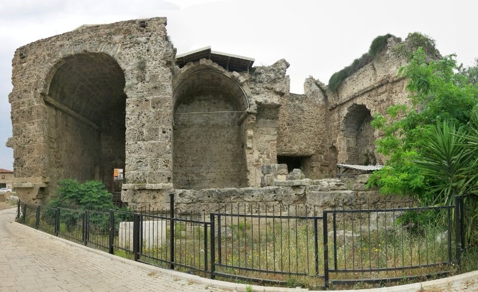 Přístavní lázně získaly své jméno díky umístění v blízkosti severovýchodní části zdejšího přístavu, kterým se vstupovalo do poloostrovního antického města. Tyto lázně byly kompletně vybudovány ve 2. století našeho letopočtu a jsou tak nejstaršími lázněmi v Side.