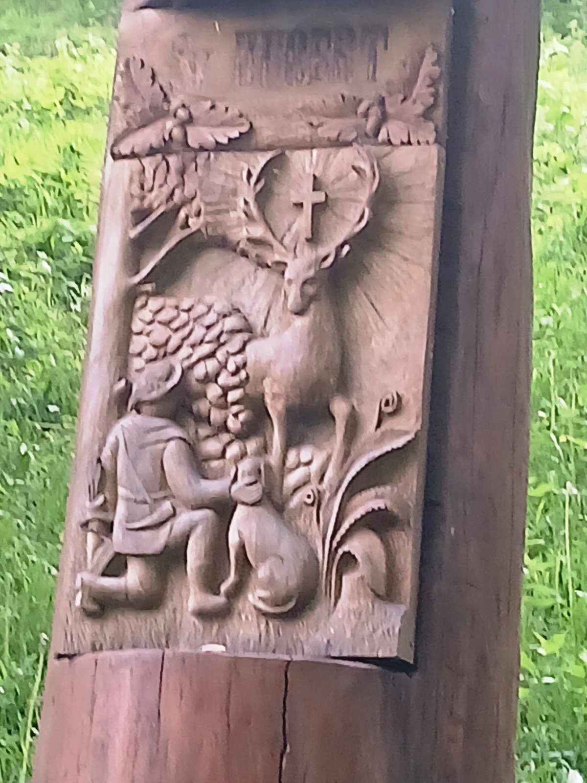 neďaleko studničky je vyrezaný kmeň so sv. Hubertom