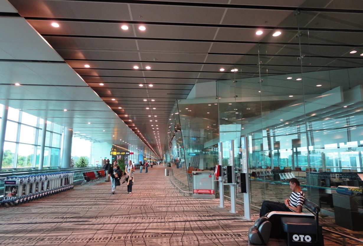 Singapore, letiště Changi SIN v Singapore s titulem Nejlepší letiště světa za rozsah svých služeb, je domovským letištěm Singapore Airlines. Letiště má tři terminály. Kromě běžných služeb jako jsou obchody, restaurace, jsou zde k dispozici např. sprchy, sauna, bazén, kino, internet. Všechny tyto další služby jsou k dispozici po 24 hod. denně zdarma. Letiště slouží nejen tomuto městskému státu, ale pro celý region jihovýchodní Asie. My jsme se pohybovali v tranzitním prostoru, protože jsme dále pokračovali na Bali. Tranzitní hala je hezky vyzdobena květinami a jsou zde pohodlné sedačky. Údajně, pokud člověk zde tráví čekáním více než 5 hod. může se přihlásit na dvouhodinovou okružní jízdu Singaporem. Škoda, my jsme tam tak dlouho nebyli.