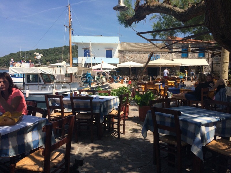 Krásný přístav s mylým náměstím s několika tavernami. Okolí je malebné. Kousek po pobřeží na západ je poměrně pěkná pláž.