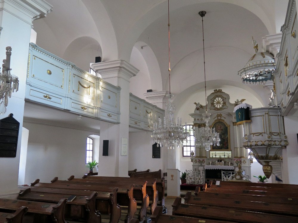 Zatímco ten stával v ulici Potoční – a později v něm postupně sídlili jezuité, karmelitáni i milosrdní bratři – ten současný najdeme na ulici Lichardově. Interiér chrámu má klasicistní dřevěnou výzdobu a jeho oltářní obraz pochází z 19. století. Jedná se o halový kostel s pilířovou emporou, jehož vnitřním prostorám vládnou typické toleranční barvy, tedy bílá a okrová. Zajímavé jsou jmenovky evangelíků v jednotlivých lavicích.