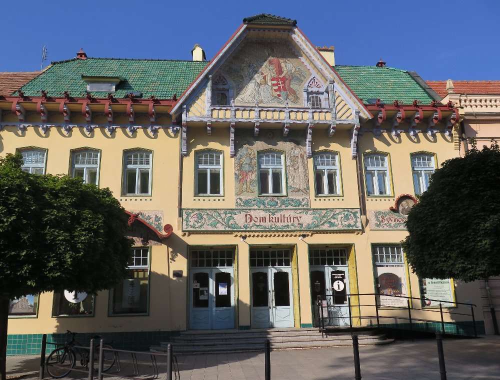 Záhorácká Skalica, to není jen gotika, renesance i baroko převážně sakrálních staveb a množství památek technických, ale také secese. Víceméně jen jedna, ne zcela čistá, ale současně o to úžasnější a v původní podobě zachovalá. Jedno ze svých vrcholných děl totiž pro město v roce 1904 připravil geniální architekt Dušan Jurkovič, který i zde tradičně kombinuje secesi s prvky folklórními. A v tom zde není velký Samo nijak osamocen, protože průčelí objektu zdobí mozaiky, vytvořené podle kreseb Mikoláše Aleše, a jeho interiéry díla Joži Úprky a Antoše Frolka. A hned na úvod si můžeme prozradit, že současný Dům kultury byl původně postaven jako polyfunkční Katolický spolkový dům, že se o této stavbě občas říká, že se jedná o tzv. „slovenský národní styl na bázi secese“ a že zde dnes sídlí mj. Záhorské muzeum a Galéria Júliusa Koreszku.