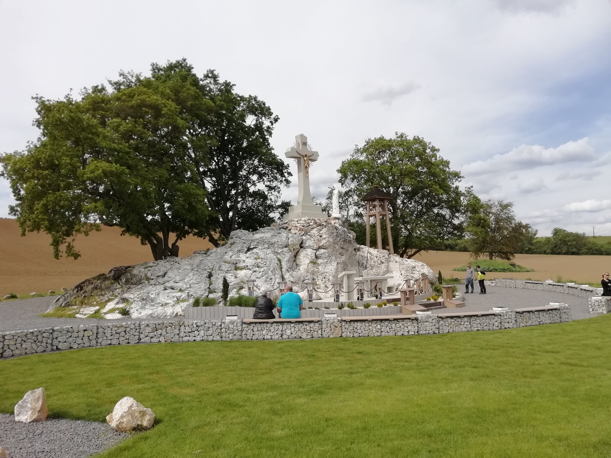 Teraz sa ale pred nami objavila štrková cesta, ktorá vedie až ku krížu. Dokonca sa tam nachádza aj malé parkovisko a priestor pred skalou je pokrytý štrkom, časť aj zatravnená. Nechýbajú lavičky, odpadové koše. No miesto zmenené na nepoznanie !