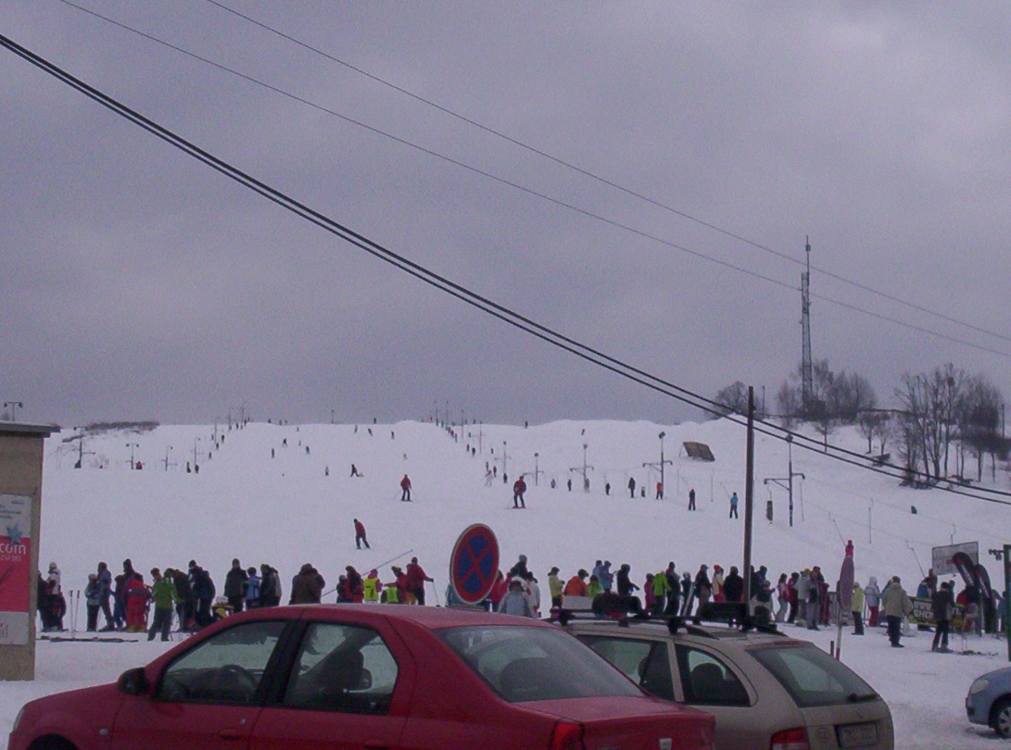 A už jsme na místě. Automobil odstavíme na hlídaném parkovišti a jsme bez starostí, že nám někdo něco ukradne, Vítá nás baterie sněžných děl, připravena k palbě v případě, že by byla příroda letos skoupá na příděl sněhu, což však ale dle dlouhodobé předpovědi nehrozí.
