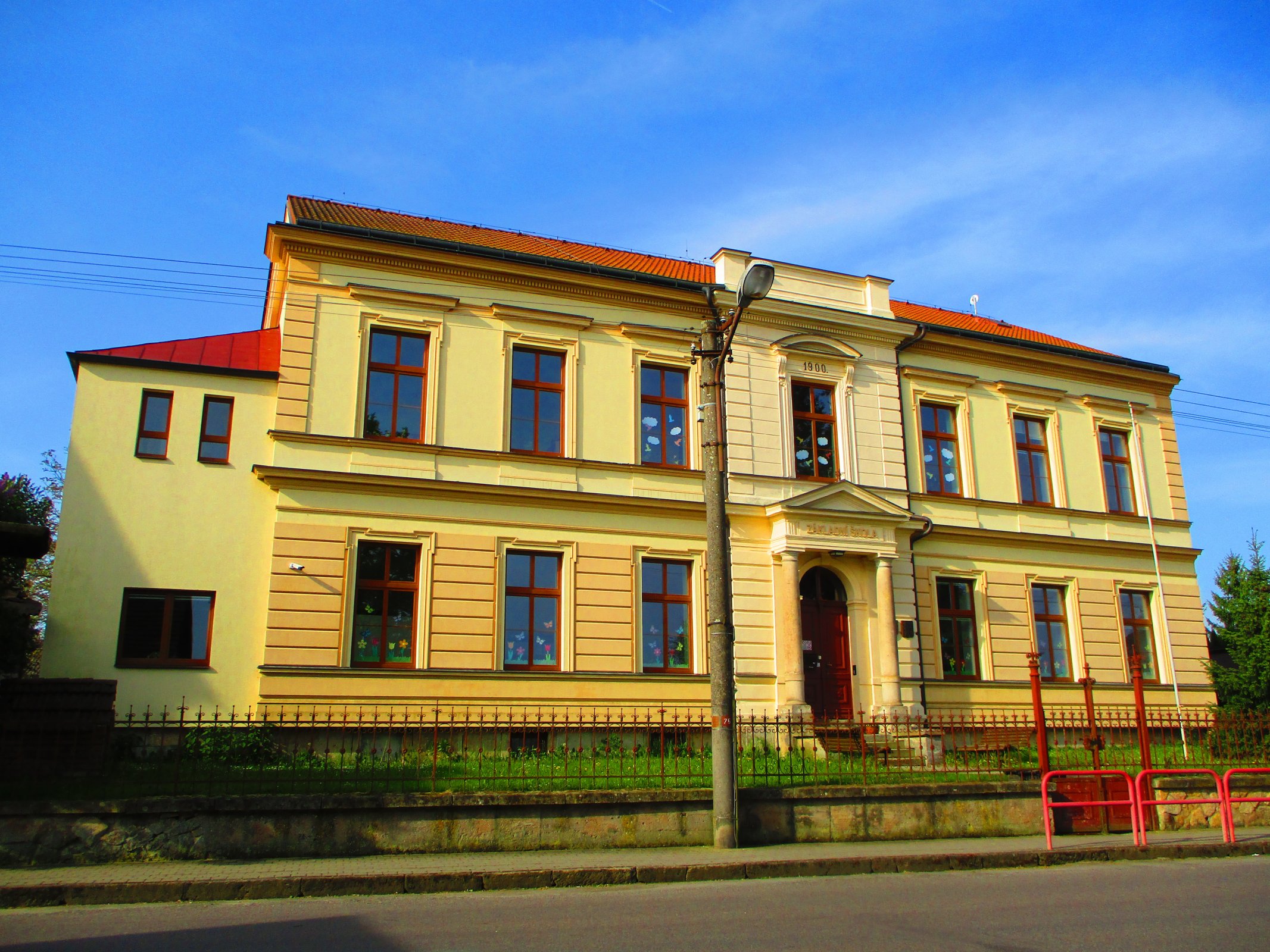 Roku 1888 odešel do výslužby řídící učitel Ignác Pohl a jeho nástupcem se stal Karel Wolf. Za něho byla v roce 1900 vystavěna pražskopředměstským stavitelem Josefem Šulcem, který byl zdejším rodákem, nová dvoupodlažní škola se sedmiosou uliční fasádou a devítiosou do zahrady, jež byla slavnostně vysvěcena 28. září 1900 a vyšla na 17 800 zlatých, tj. 35 600 K. Důvodem k tomu se stalo rozšíření dosavadní dvoutřídky počátkem školního roku 1891/1892 na trojtřídní školu a všeobecný nedostatek místa. Třetí třída totiž musela být umístěna v domě M. Nettlové čp. 69, protože vlastník velkostatku a zámku v jedné osobě řekl, že je dost, že má v zámku 2 třídy a byt učitele a i těch by se rád pozbyl. Jako zajímavost můžeme dodat, že na stavbu školy bylo spotřebováno: 234 ¾ m3 kamene, 511 m3 domácího písku, 35,8 m3 labského písku, 6,9 m3 písku z Boháňky, 196 000 cihel, 224,4 m3 pískovcových kvádrů, 15 500 kusů pálených střešních tašek a 6 vagonů vápna. Za dovoz potřebného stavebního materiálu zaplatila obec navíc 1 228,85 zlatých, tj. 2 457,70 K.