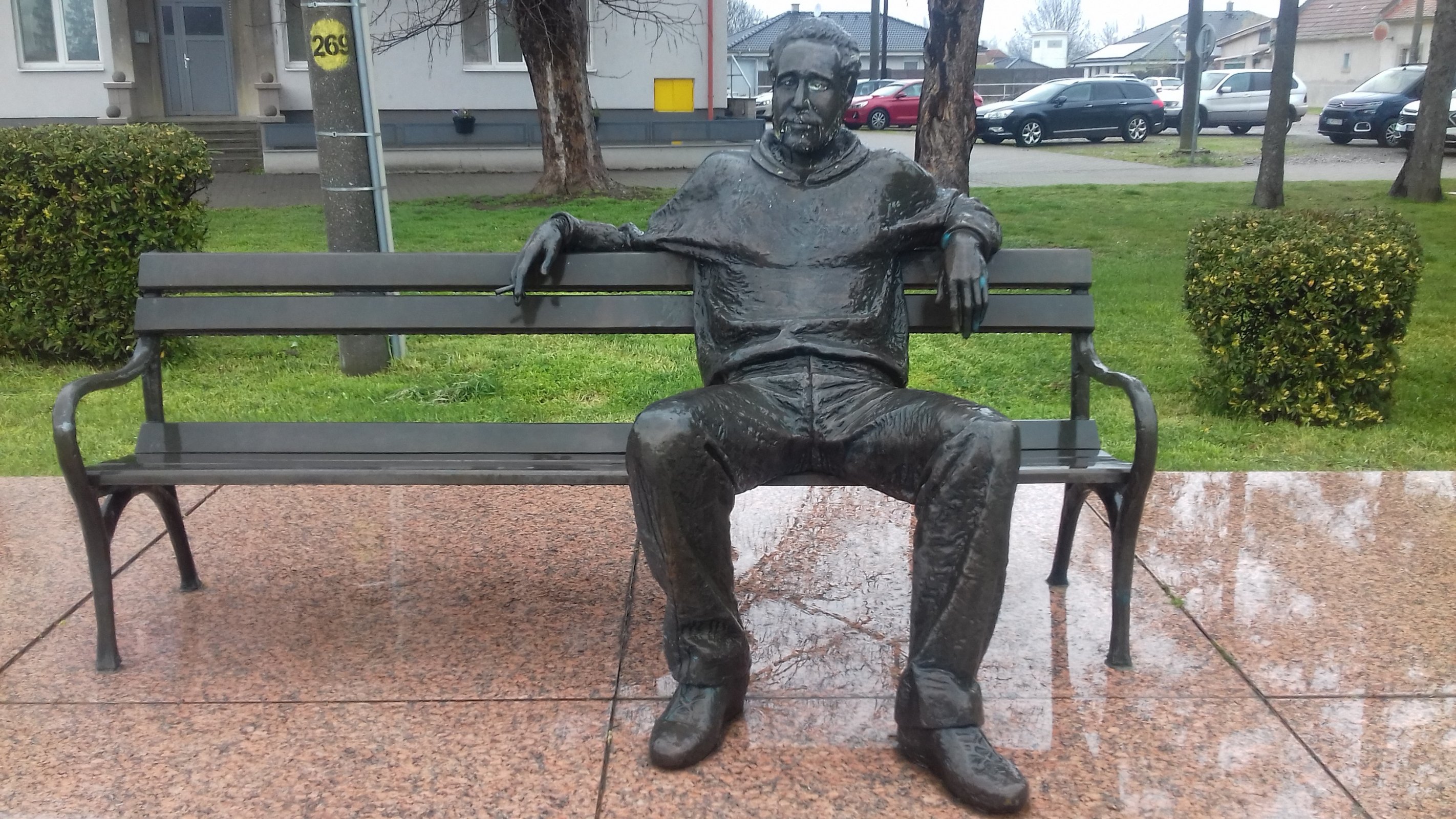 Příspěvky z okolí Sládkovičovo - socha, lavička spisovateľa Alfonza Talamona
