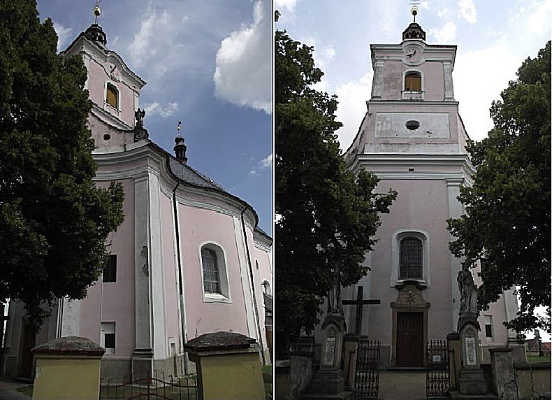 Původně zde stával kostel již ve 14. století, některé informační prameny hovoří dokonce o století 12. Zprávy o něm jsou však velmi skoupé a nějaké zmínky se snad dají nalézt jen v dokumentech z let 1340, 1351, 1607 a 1720. S jistotou ovšem víme, že současný kostel byl postaven převážně z finančního odkazu místního faráře Václava Hlávky a nechal jej postavit jeho nástupce Jan Vybíral.