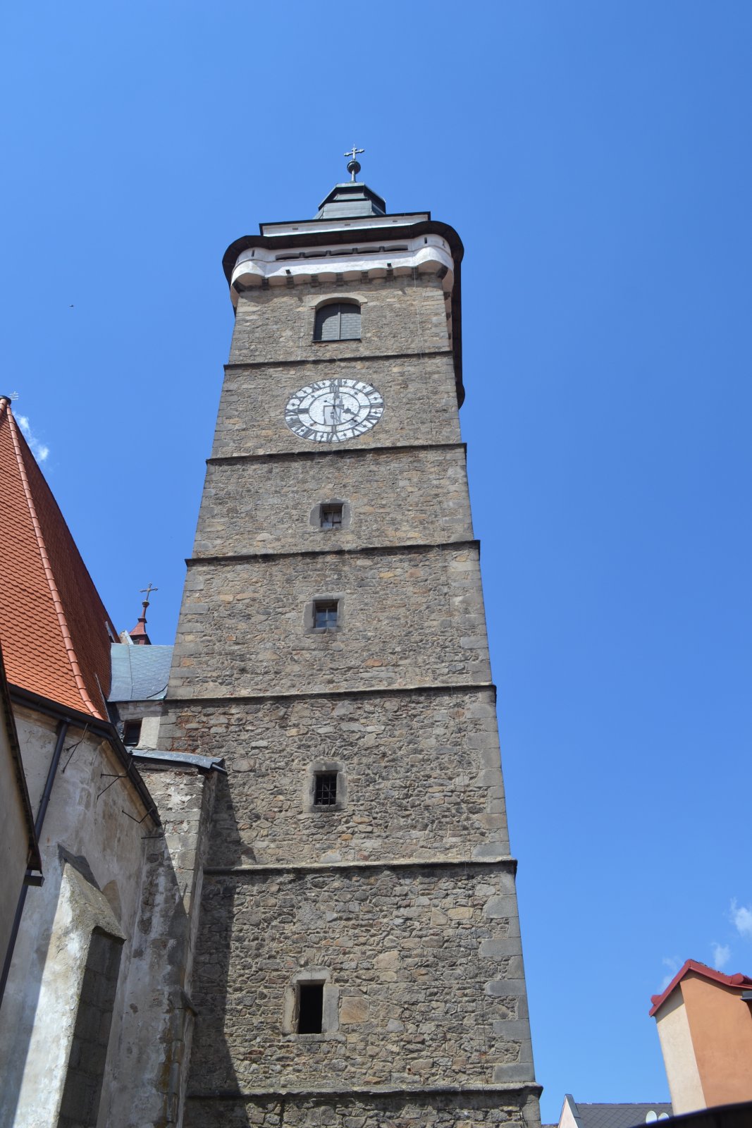 Mestskú vežu farného kostola Nanebovzatia Panny Márie postavili v rokoch 1503 - 1549 za účelom mestskej hlásky. Stavba veže trvala veľmi dlho - 46 rokov. Vznikla predovšetkým z veľkého finančného príspevku súkenického cechu. Vežu postavil neznámy majster Michal na mieste, kde predtým stála bývala sakristia kostola. Celková výška tejto kamennej veže s hodinovými ciferníkmi je 56,5 metra. Má sedem poschodí, ktoré sú oddelené jednoduchými rímsami. Piate poschodie je rozdelené na vežný byt a ochoz. Výška vyhliadkového ochozu je vo výške 33,5 metra. Pokiaľ si chcete pozrieť mestečko a okolie z vtáčej perspektívy, musíte zdolať 172 schodov. Ochoz je postavený na krákorcoch a tvorí ho päť oblúkov arkád s balustrovanými stĺpami. Pod vyhliadkovým ochozom je zvonica, v ktorej je celkovo 7 zvonov, z ktorých najstarší je z roku 1750. Strecha veže je baroková, prilbová, je z roku 1750, kedy nahradila staršiu poškodenú požiarom. Až do roku 1945 vo veži býval mestský strážny. Veža bola po roku 1989 opravená a sprístupnená pre verejnosť.
