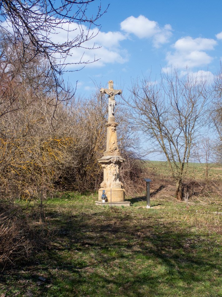 Původně byl kříž umístěn více v poli, na nové místo byl přemístěn při nedávné opravě (2010). Podle všeho by měl být kříž opatřen i nějakým popiskem, ovšem 22.3.2025 zde byla jen prázdná tabulka.