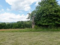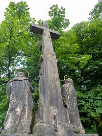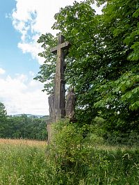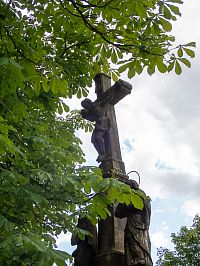 Poněkud stranou Dvorského vrchu lez u podobně nepoužívané cesty pod stínem již celkem vzrostlého jírovce maďalu (tedy kaštanu) objevit zajímavé sousoší Kalvárie.
