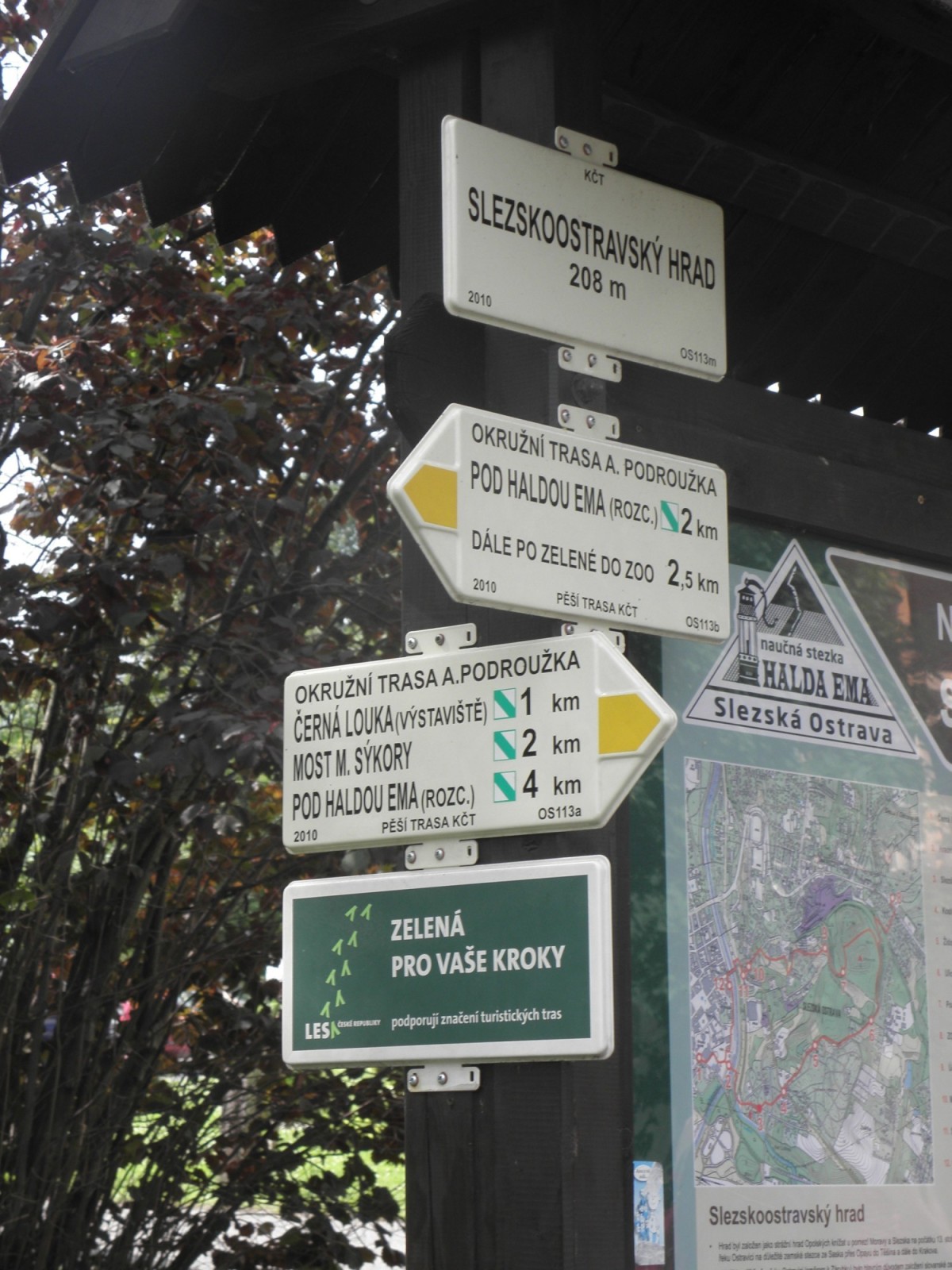 ŽTZ vyznačuje okružní trasu A. Podroužka vedoucí přes Černou louku, kolem Keltičkovy kovárny pod haldu Ema (na vrchol však vedení OKD nedávno zakázalo přístup - Ostrava tak přišla o svou "sopku") zpět ke SlezskoOstravskému hradu. Od rozcestí pod haldou můžete jít po zelené do ZOO Ostrava.