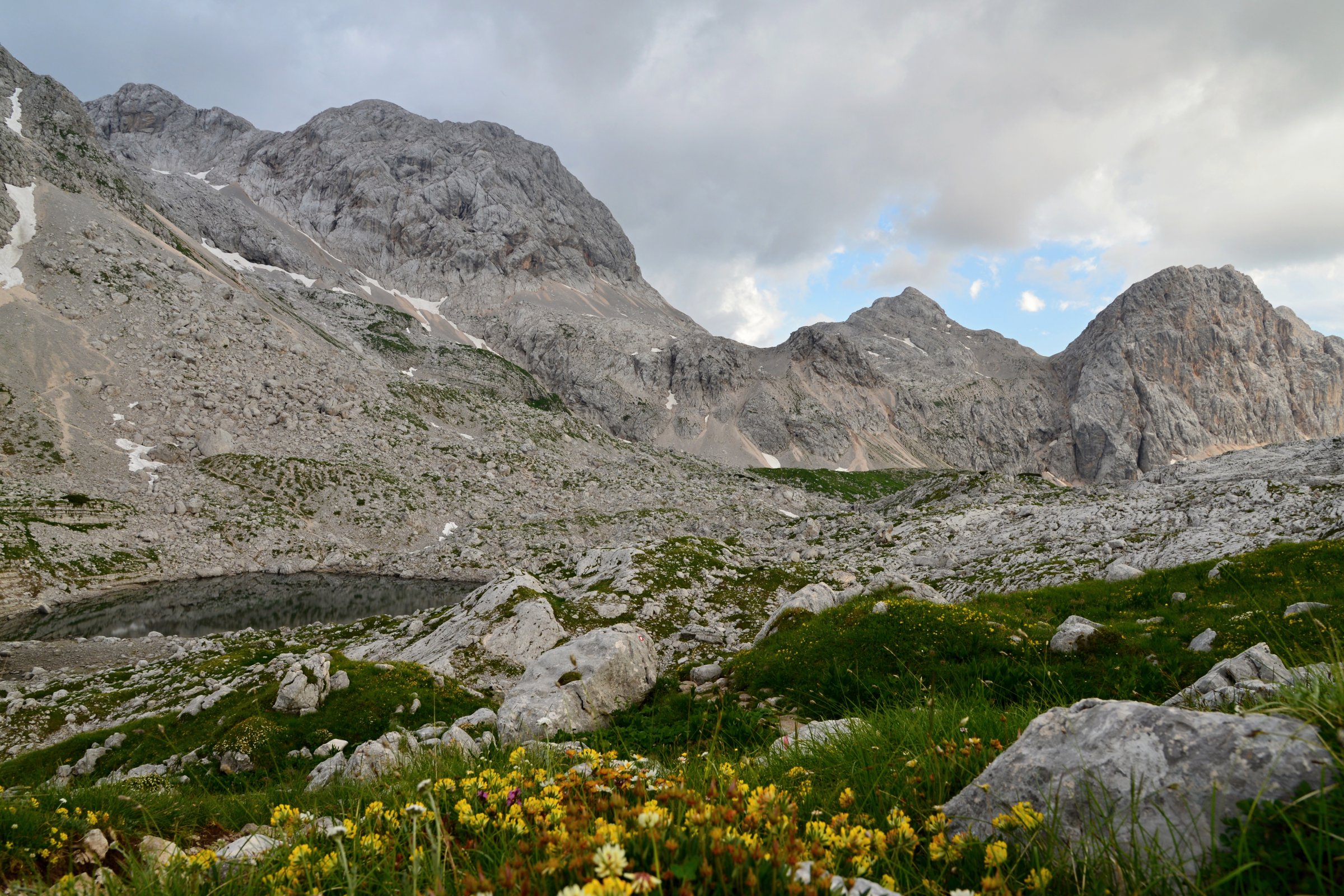 Slovinsko - Julské Alpy: stezka od sedla Vrata k chatě Zasavska koča na Prehodavcih, Jezero pod Vršaki