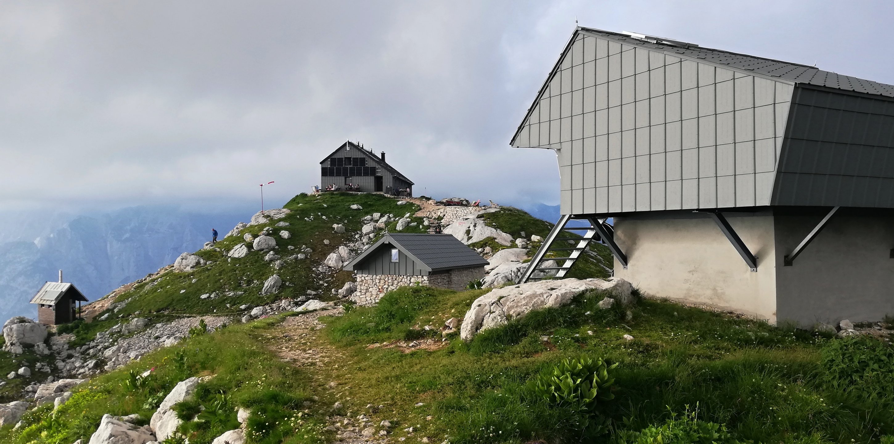 Slovinsko - Julské Alpy: chata Zasavska koča na Prehodavcih, ranní pohled