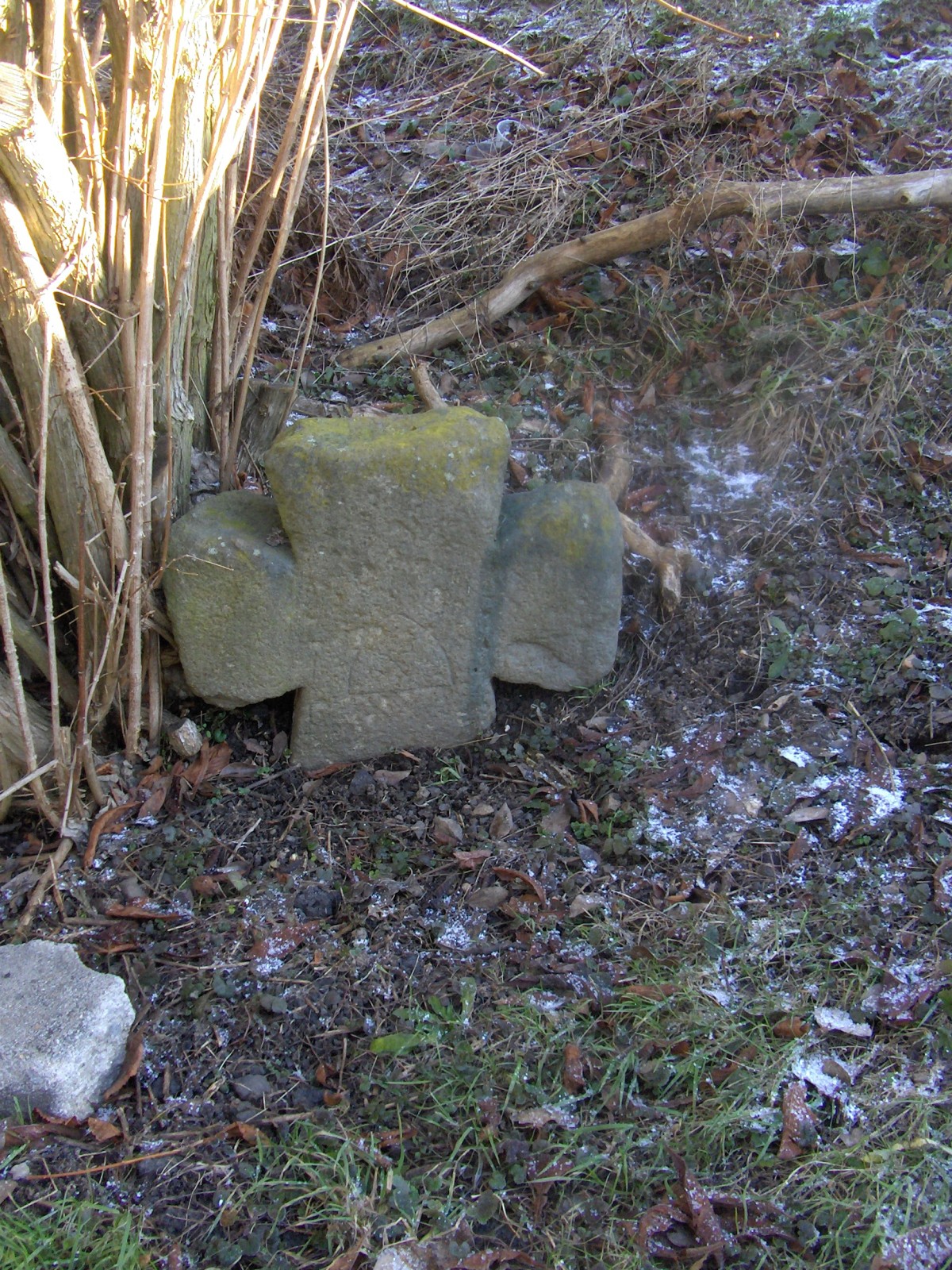 Malý nenápadný smírčí kříž, který vyčnívá asi 40 cm nad terénem, je schován pod vysokým keřem v prudkém náspu silnice přímo proti hotelu Slunce v obci Lužný, 300 metrů od vlakové zastávky Perštejn.