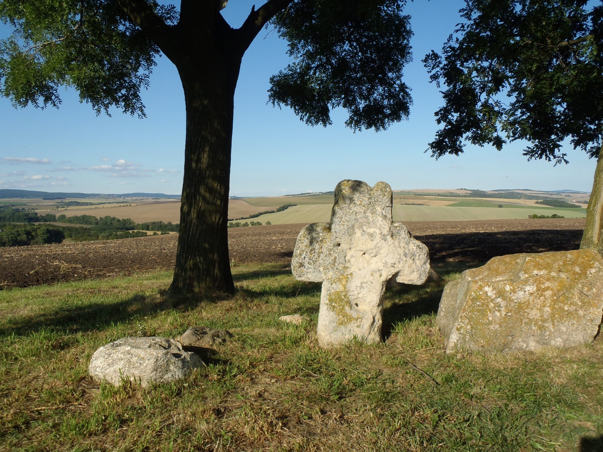 Tento kříž se také nazývá "Cyrilometodějský", protože se naklání směrem k Velehradu, odkud přišli Cyril a Metoděj. Nestojí na svém původním místě, ale byl sem přesunut po zcelování pozemků ve 30.letech 20.století. Tento kříž má připomínat smrt dívky, kterou udupal splašený kůň, když žala trávu.