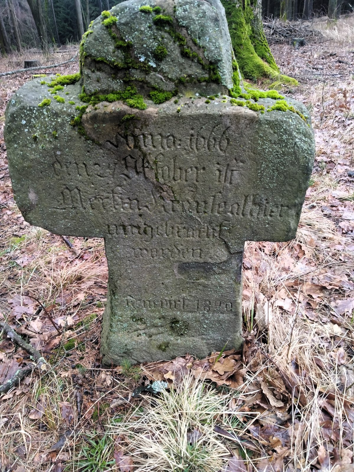 350 let starý smírčí kříž byl nedávno při kácení stromů poničen. Následně byl slepen do původní podoby.