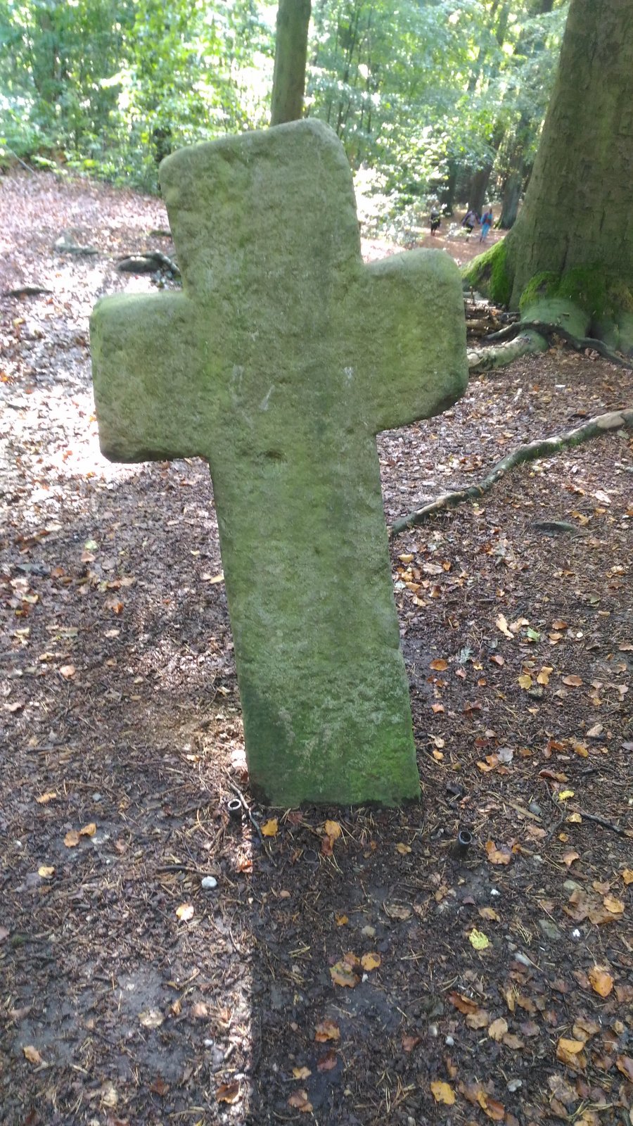Mírně nakloněný smírčí kříž je 150 cm vysoký a na přední straně má vyhloubený důlek. V centrálním registru smírčích křížů má číslo 0571.