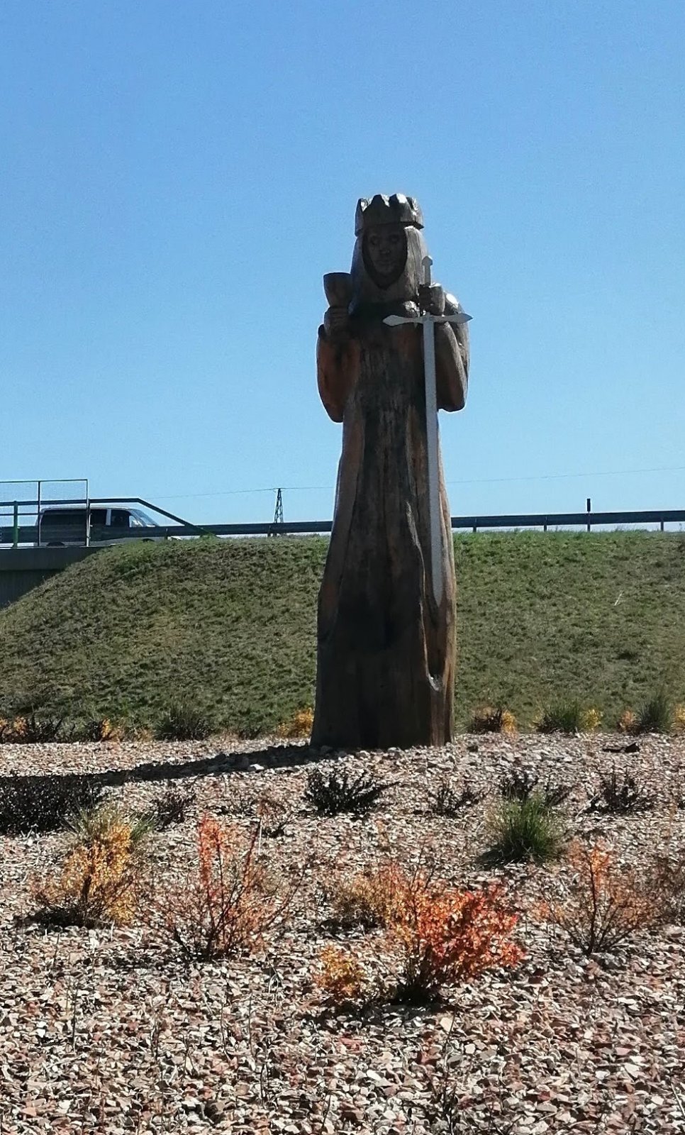 Socha Svatá Barbora - Patronka horníků se nachází na kruhovém sjezdu z dálnice 6 do Sokolova ve směru od Starého Sedla![]()