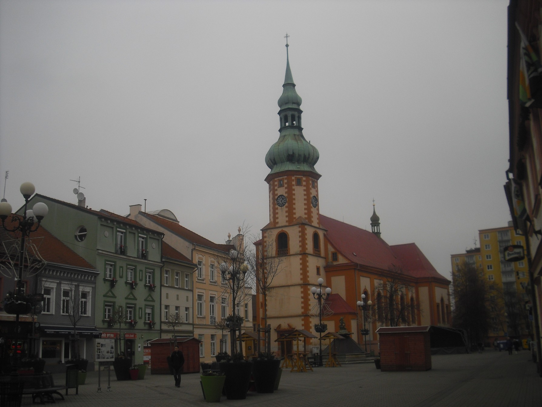 Sokolov a Mariánský sloup na Starém náměstí