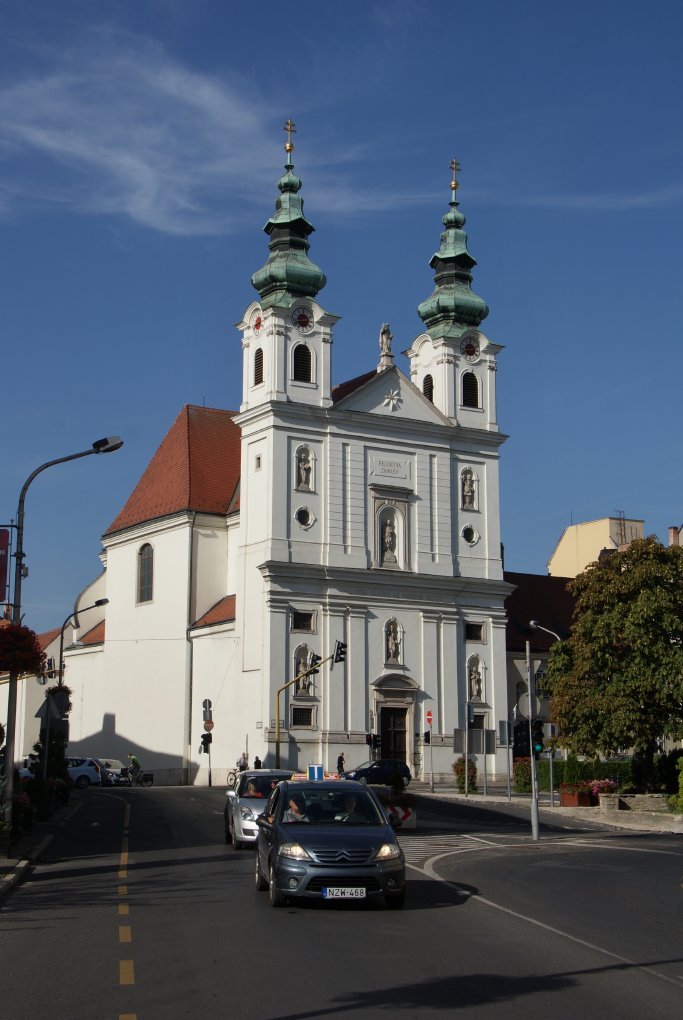 Tento barokní, římsko-katolický, kostel, jehož oficiální adresou je Széchenyi tér 4, bývá většinou otevřen pouze v době bohoslužeb. Ty se zde konají nepravidelně – tedy rozdílně podle ročního období a pracovního / nepracovního dne – ale většinou se uvádí časy 6:30, 7:45, 11:30, 17:30 a 19:30 pro pracovní dny a 7:00, 8:00, 9:00, 10:00, 11:30, 16:00 a 18:30 pro víkendy.