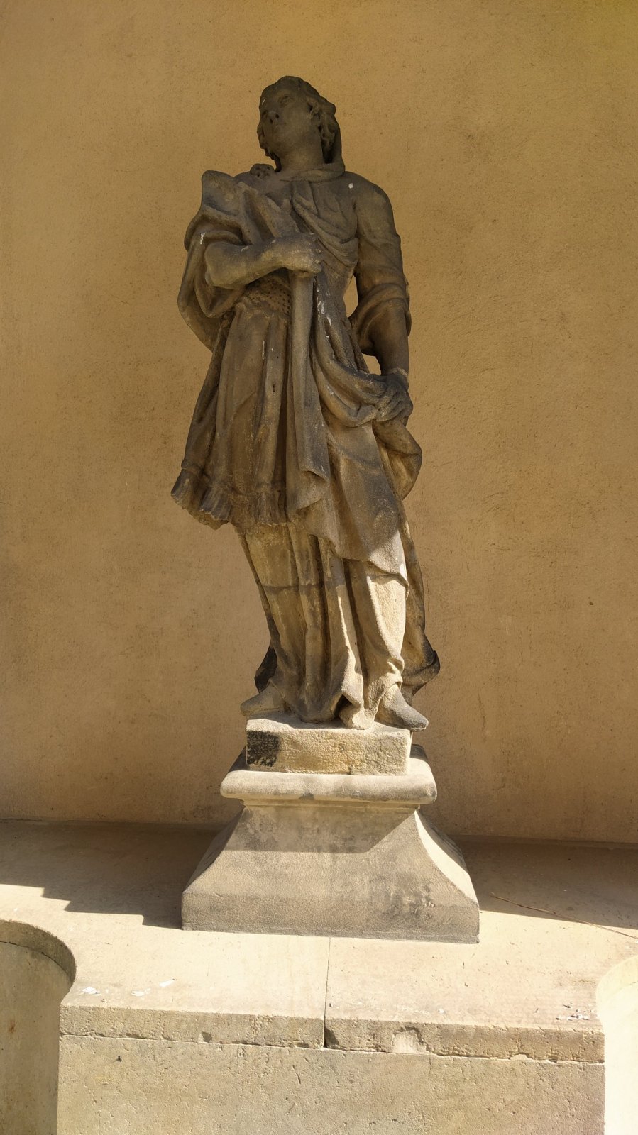 Soubor soch tvoří socha sv. Františka Serafinského a sedm alegorií křesťanských ctností, z nichž některé nelze přesně určitě, protože jim chybí typické atributy.